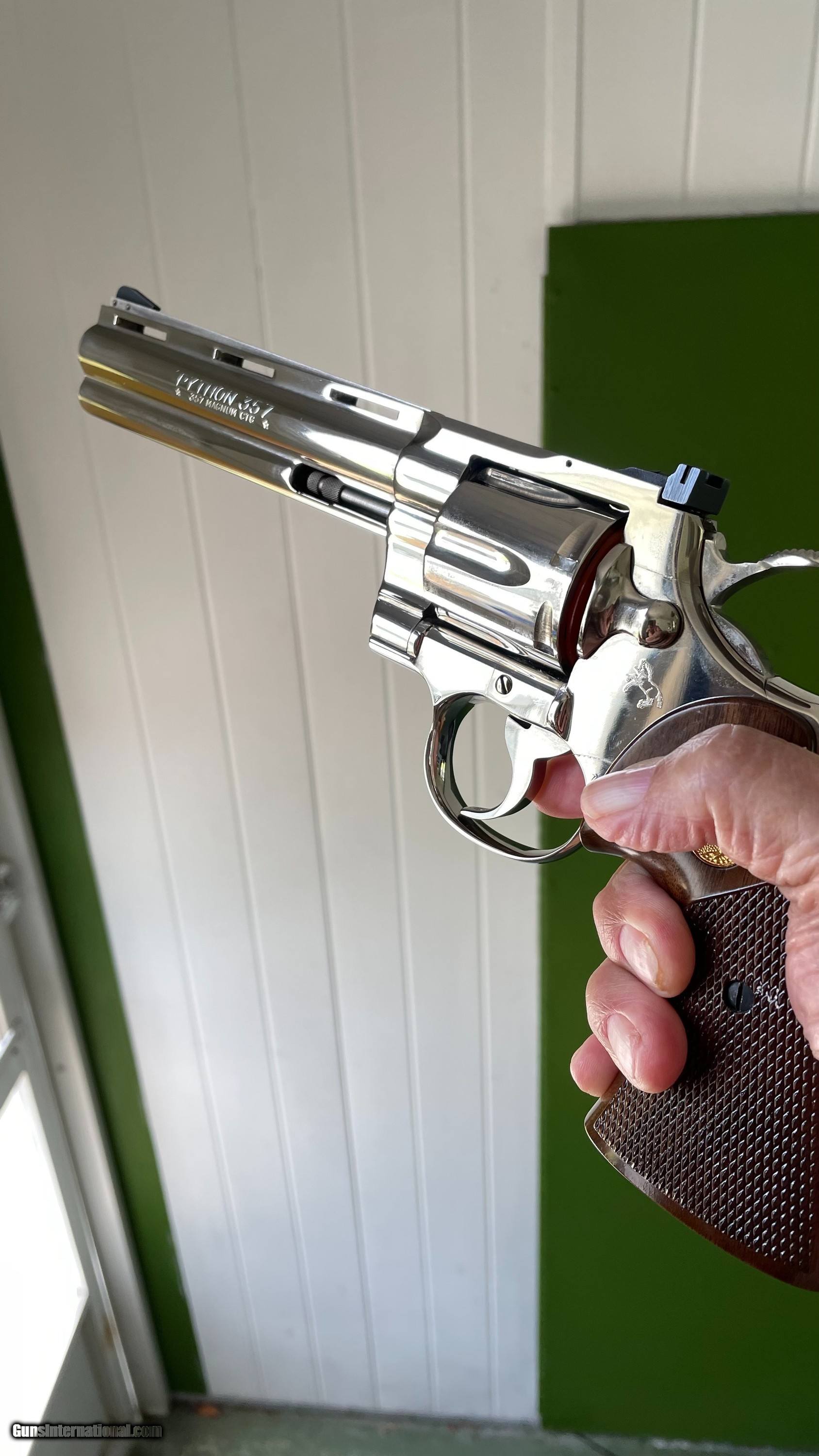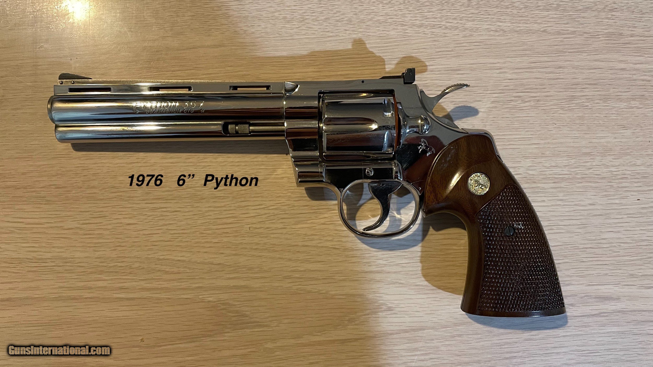 Description: This Python is like new, NO scratches, wear marks or dings. Bore excellent, wood grips and Colt box and papers, $3000.00 SOLD Handgun Caliber: .357 Magnum Manufacturer: Colt Model: Python Barrel Length: 6 Bore: Excellent Condition: Excellent Wood Condition: New |