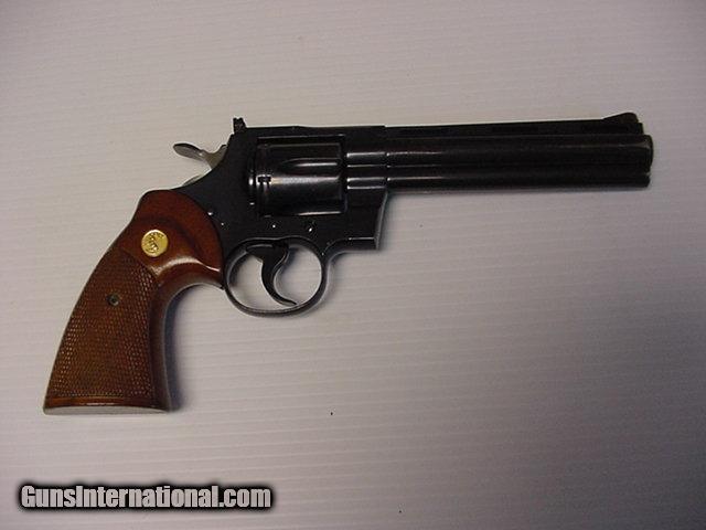 Used Colt Python blue 6 inch, some holster wear, Colt Trooper grips no box, no papers.