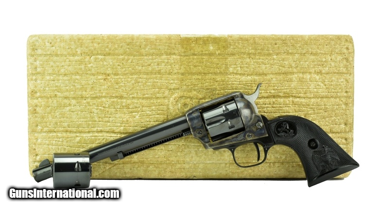Colt Peacemaker Buntline .22 LR/.22 Magnum caliber revolver. Peacemaker Buntline made in 1975. Muzzle has some wear, otherwise very good condition with spare .22 Magnum cylinder.