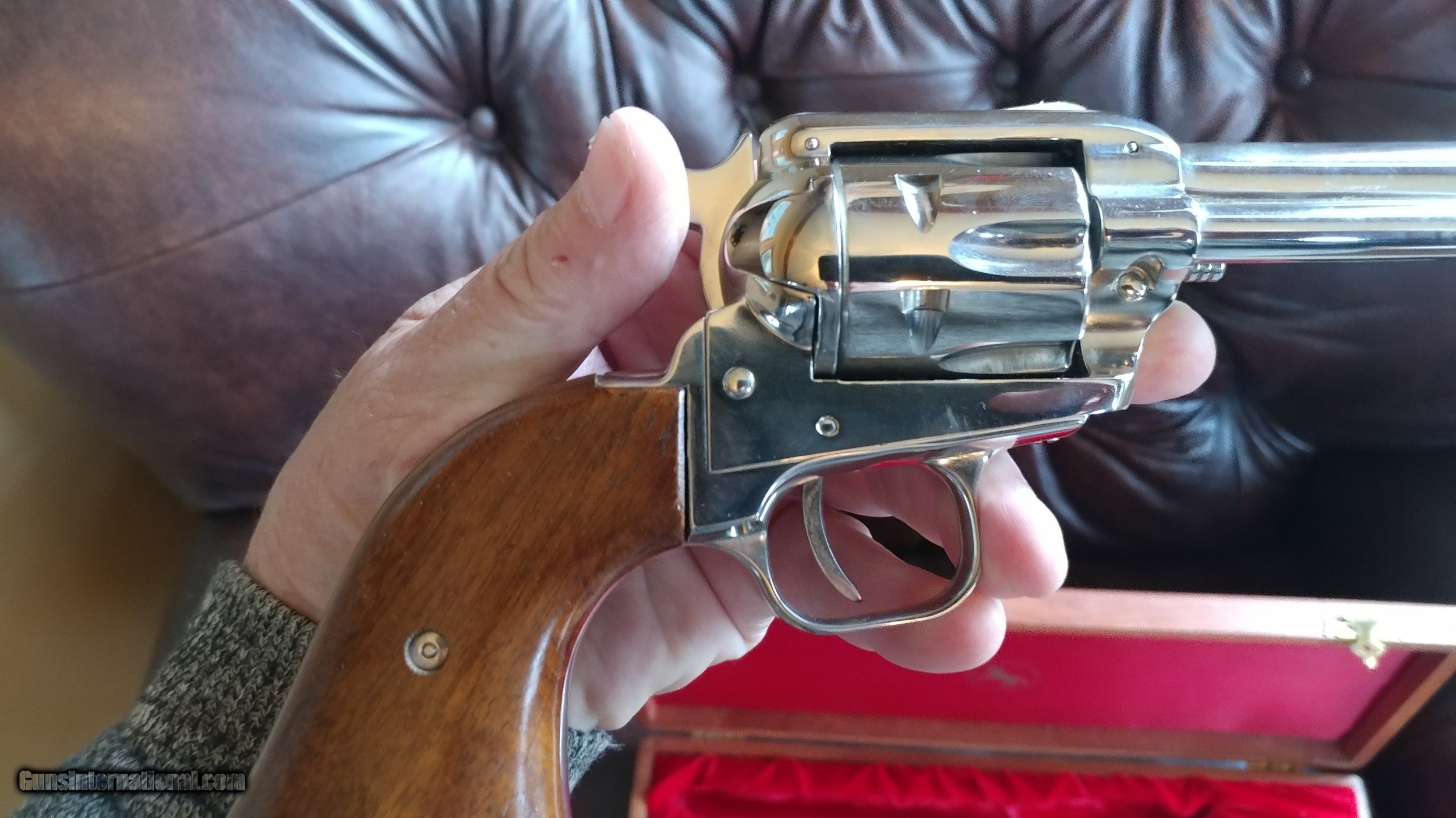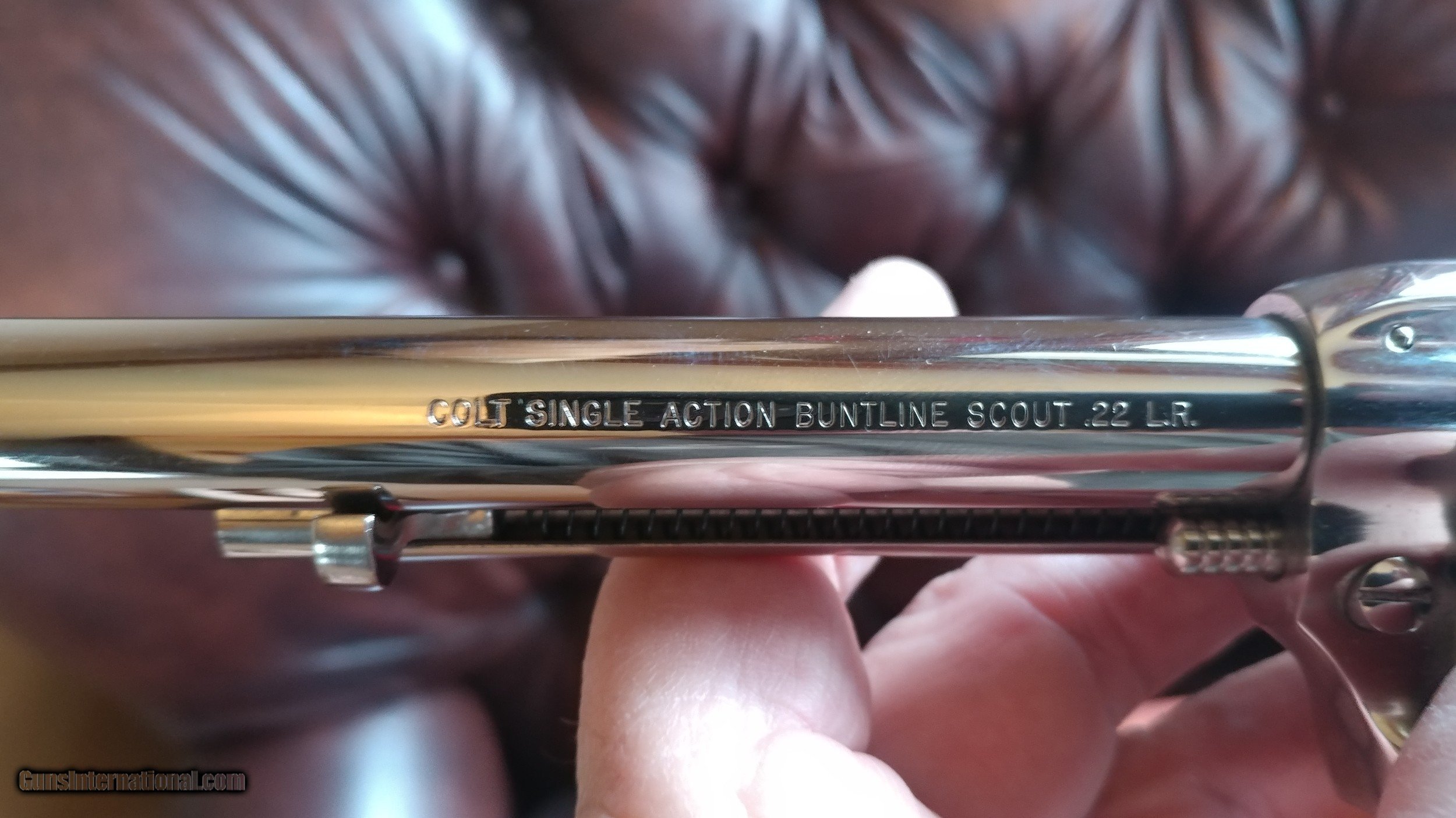 Description: This buntline, manufactured in 1968 has not been fired and has been in the maker's case since new. There are no marks on the metal or grips. The case has some minor marks, as shown on the pictures. SOLD Manufacturer: Colt Model: Scout |