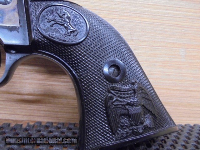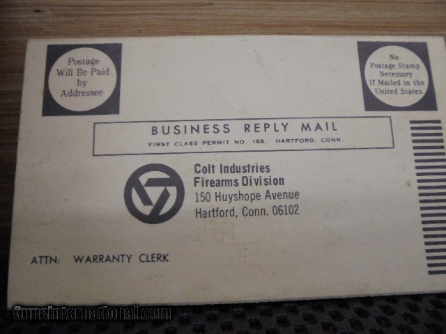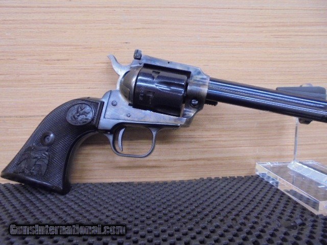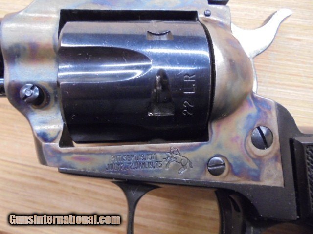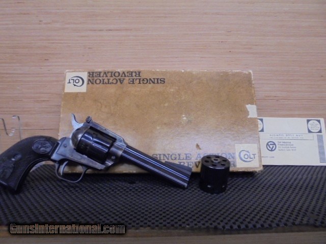 Description: APPEARS NEW IN BOX PRICE HAS BEEN LOWERED COLT NEW FRONTIER 22 SINGLE ACTION .22 LR & .22 MAG CYCLINDERS 4 3/8" BLUED BARREL CASE HARDEN FRAME COLT BLACK GRIPS ADJ REAR SIGH RAMP FRONT SIGHT HAS FACTORY BOX & COLT WARRANTY CARD THIS REVOLVER WAS MADE IN 1974 LR CYCLINDER MAY HAVE BEEN TURNED ONCE THE .22 MAG CYCLINDER APPEARS UNTURNED OR USED AT ALL ****PLEASE CALL IN THE WITH THE SELLER’S INVENTORY NUMBER IF INQUIRING ABOUT A FIREARM****** WE DO NOT SHIP FIREARMS AND/OR FIREARMS’ PARTS OUT OF THE 50 UNITED STATES, SO DON’T ASK PRICE REFLECTS PAYMENT BY MONEY ORDER / CASHIERS CHECK. A 3% PREMIUM IS ADDED FOR CREDIT CARDS. WE DO ACCEPT PERSONAL OR BUSINESS CHECKS, BUT THERE IS A GRACE PERIOD OF 10 BUSINESSS DAYS ON THEM. Shipping is $40 for handgun and $30 for long gun. Shipping to Alaska and Hawaii will be more based on weight of firearm. WE DO OFFER LAYAWAY PLANS FOR 30,60, OR 90 DAYS. THERE IS A $5.00 CHARGE FOR EVERY 30 DAYS ITEM IS ON LAYAWAY. WE ALSO REQUIRE A 20% DOWN PAYMENT ON TOTAL OF LAYAWAY SALE. LAYAWAYS ARE NON- REFUNDABLE. HERE IS HOW THIS PROCESS WORKS. YOU WOULD CALL US AT 540-337-9218 WITH LISTER # TO PURCHASE THE GUN. THEN ONCE I HAVE RECEIVED PAYMENT AND AN FFL (FEDERAL FIREARMS LICENSE) FROM A LICENSED DEALER IN YOUR AREA OF YOUR CHOICE. WE WILL THEN SHIP THE GUN TO THEM. YOU WOULD THEN PICK UP THE GUN AT YOUR LOCAL DEALER AND DO PAPER WORK THERE. Please have your FFL Dealers contact information when you call. DOMINION OUTDOORS 15 ANGELA COURT FISHERSVILLE, VA 22939 540-337-9218 540-337-2422 fax M – F 9 to 6 ETZ Sat 9 – 4 ETZ ****PLEASE CALL IN THE WITH THE SELLER’S INVENTORY NUMBER**** ***PLANO HARD CASES AVAIABLE FOR PURCHASE $19.99 WITH THE PURCHASE OF A FIREARM** ****PLEASE CALL IN THE WITH THE SELLER’S *** Online prices compared to in store prices will vary. *** SOLD |