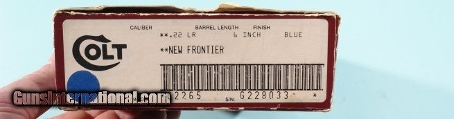 COLT NEW FRONTIER .22LR SINGLE ACTION 6” REVOLVER CA. 1980’S IN ORIG. BOX.