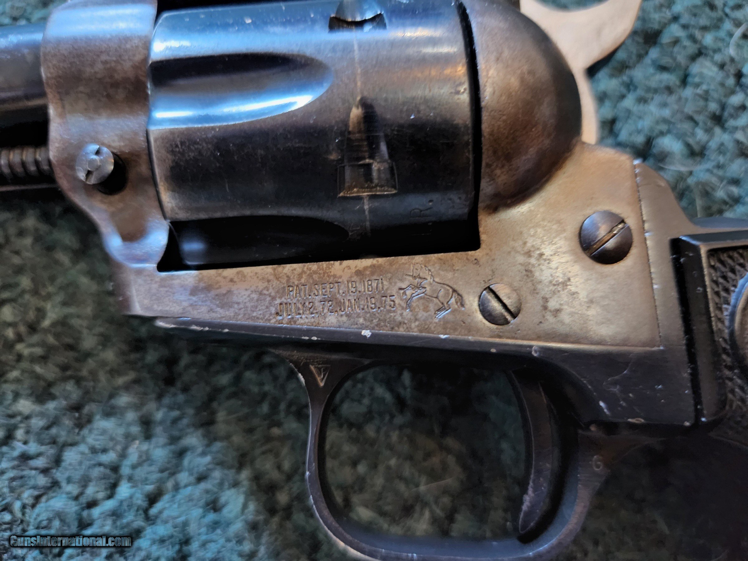 Description: Colt, Peacemaker, 22 LP, factory original handles, all original, 6" barrel, 6 shot, grooved rear sight, bladed front sight, 80% overall condition, serial # L01865. For further information and faster service call John at 941-748-7318 or 941-224-5563. SOLD |