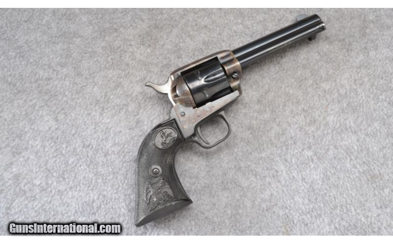Description: Shows a bit of light holster wear with excellent bore and chambers. Complete with .22 LR/.22 Mag. cylinders. No box. SOLD Manufacturer: S/N G111XXX Caliber Info: .22 LR/.22 Mag. Metal Condition: Very Good Bore Condition: Excellent Barrels: 4 1/2 Triggers: Factory Stock: Black Hard Rubber Grips Weight: 30 OZ Sights: Blade Front - Notch Rear Item Location: Wheeling, WV |