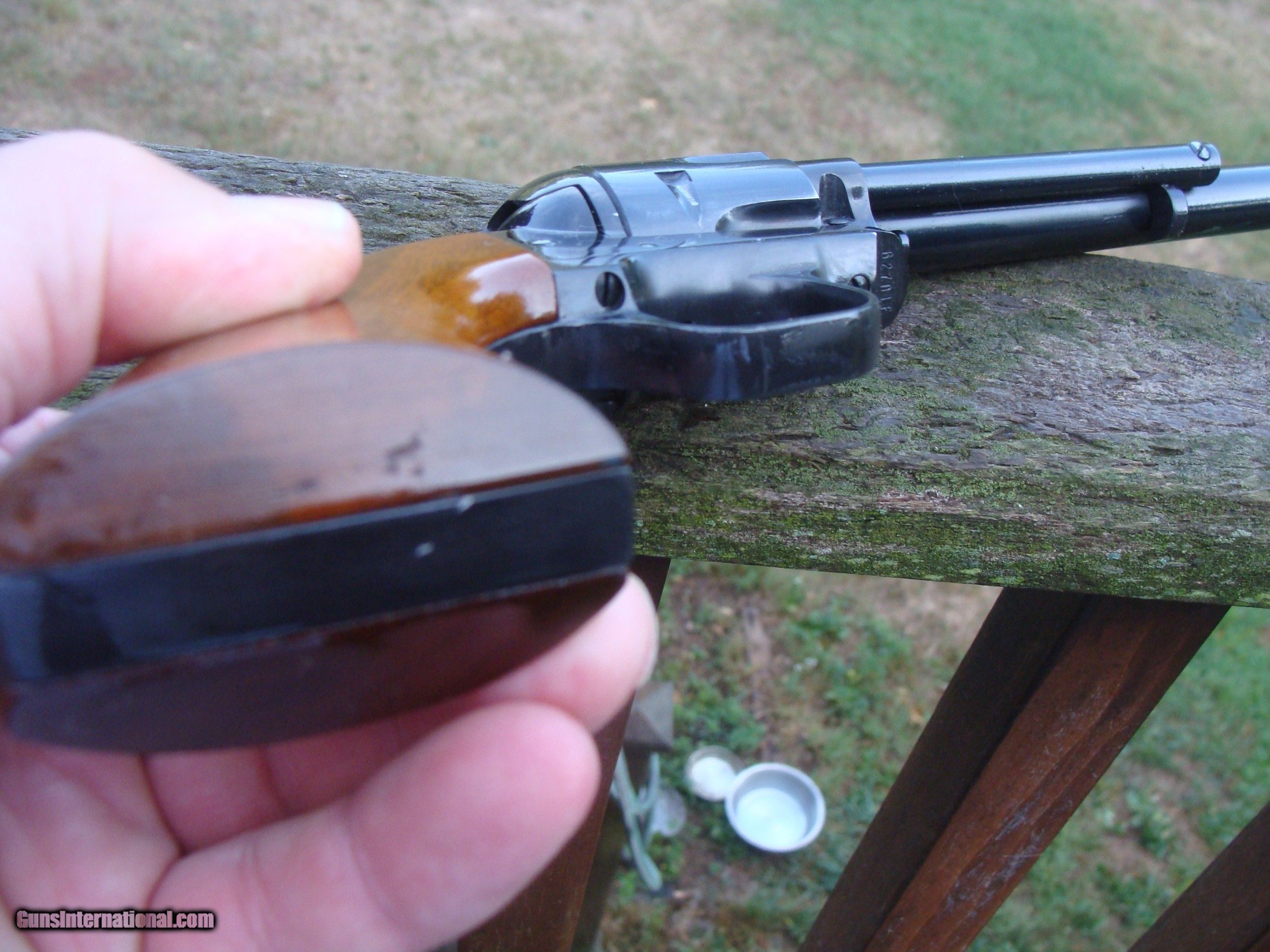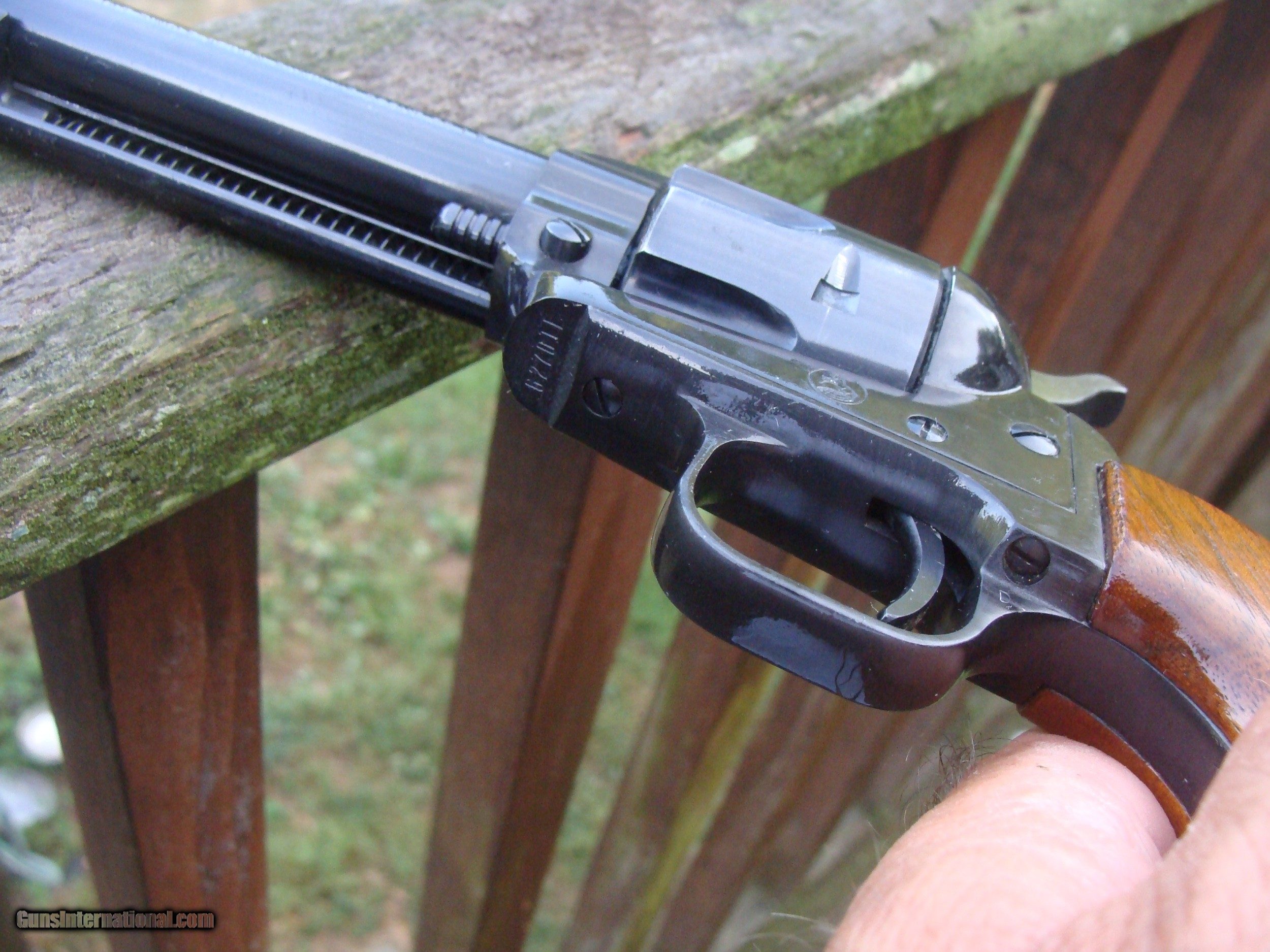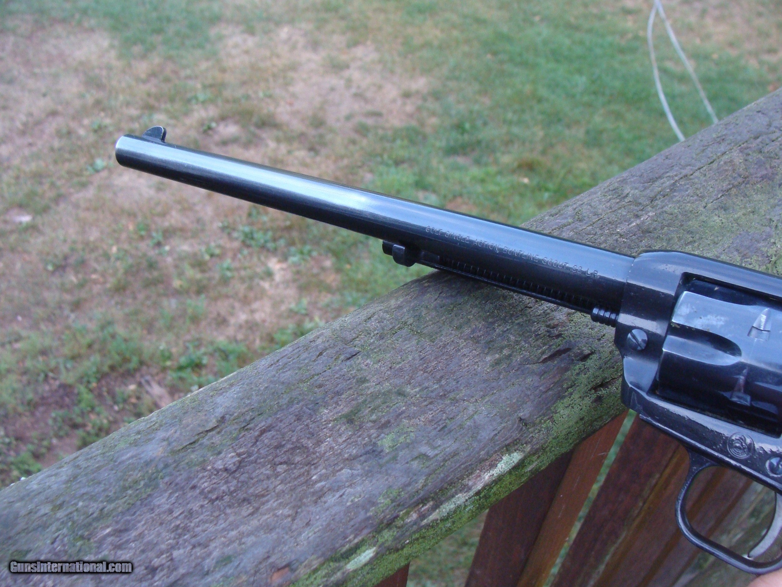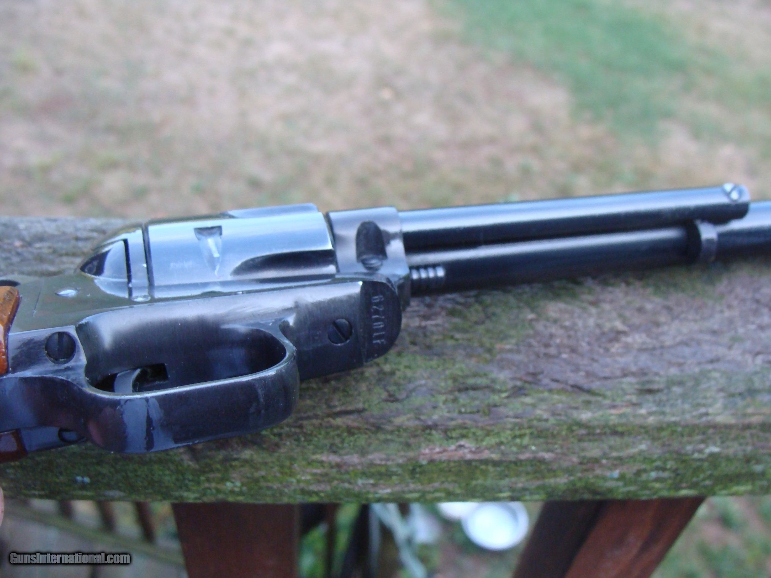 Description: Very nice Single Action Scout Buntline Scout 22. cal revolver. Shows light wear from careful use in the many (60 plus) yrs since this was produced in Hartford just down the road from us. No pitting or flaws of note except for some lightening of blue on the left side of barrel (easily touched up with cold blue). Rare to find in correct orig box like this one shipping is $ 30.00 WE HAVE OVER 1500 SALES ON ALL SITES WITH AN A+ RATING ON ALL (WE ALSO KEEP AN INVENTORY OF OLDER PERIOD CORRECT SCOPES; CALL WITH NEEDS) WE MOSTLY PICK VERY CLEAN AND LIGHLTY USED GUNS. WE ARE HAPPY TO TAKE CONSIGNMENT GUNS AND COLLECTIONS OR WILL BUY YOURS OUTRIGHT. WE SOMETIMES ARE EMPLOYED FOR ESTATE PURPOSES AND VALUATIONS. CT RESIDENTS MUST CONTACT US TO UNDERSTAND OUR IN STATE TRANSFER POLICIES. WE CAN TAKE A CREDIT CARD HOWEVER THERE IS A 3% ADD ON BASED ON THE TOTAL FOR USE OF A CARD. IT IS ALWAYS THE BUYERS RESPONSIBILITY TO GET US A COPY OF YOUR RECEIVING FFL'S LIC AND WE REQUIRE A COPY OF YOUR PHOTO ID BEFORE THE GUN SHIPS YOU MUST CALL YOUR FFL.WE DO NOT CALL FOR YOU. LAYAWAY PURCHASES NOT COMPLETED OR ANY RETURNED ITEM UNLESS NOT AS DESCRIBED ARE SUBJECT TO A 10% RELISTING/RESTOCKING FEE AND MUST BE RETURNED WITH NO MARKS OR SCRATCHES, SENT BACK INSURED, PRIORITY SIGNATURE REQUIRED WE DO NOT OFFER AN INSPECTION PERIOD PER SE HOWEVER GUNS MAY BE RETURNED IF NOT EXACTLY AS DESCRIBED UNDER NO CIRCUMSTANCE MAY ANY GUN TO BE RETURNED HAVE BEEN REMOVED AT ANY TIME FROM RECEIVING FFL DEALERS PREMISIS AND RETURNS MUST 1ST BE APPROVED BY US IN WRITING. SOLD |
