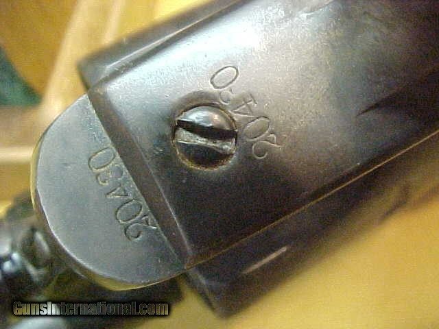 Description: #5010 Colt S/A 7-1/2”x45COLT, 20XXX range (1876), fine bore, about an 8 on a scale of 10, with no pitting and a smooth, tight action with all four clicks on the hammer. The metal is vey nice for its age and well above average for what is basically a no-finish gun, but it has a few light scattered pits on the barrel exterior.No mentionable pitting or serious wear anywhere else. The one-piece wood grips are really very, very fine grips with no blems at all. The overall look is certainly well above what one usually sees for such an early old cowboy Colt, but suffice to say this (…and this is a VERY important fact!!) …that since many, if not most antique Single Actions have been enhanced and/or “juiced-up” to some degree (especially the very highly sought after and desirable militaries), that one should always take the possibility of some degree of upgrading from some of the many previous owners. This gun has been valued and priced with that possibility in mind, although in MY opinion, this revolver looks pretty danged good and I don’t see anything that jumps out at me as being incorrect with the exception that it looks have had some Cold Blue slopped on it at one time and the grips look to be replaced. They are just TOO good for a 145 year old gun. There are a lot of photos to this VERY desirable and very early Civilian S/A, so if they all don’t load (there are about 20 in all), just email me and I will forward them to you by return email. This is a real good opportunity to own a real early piece of the most coveted and popular Wild West frontier cartridge handguns …and one of the fastest value appreciators in the antique gun field. VG+/VG++ $4195 SOLD Antique: Yes |