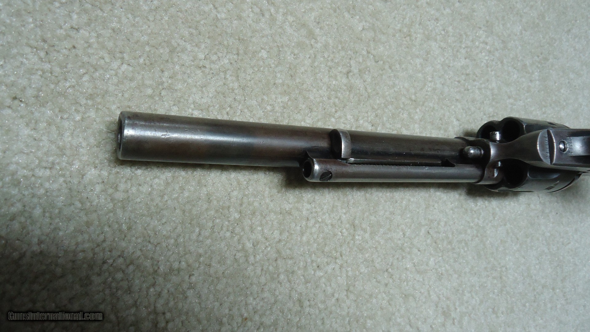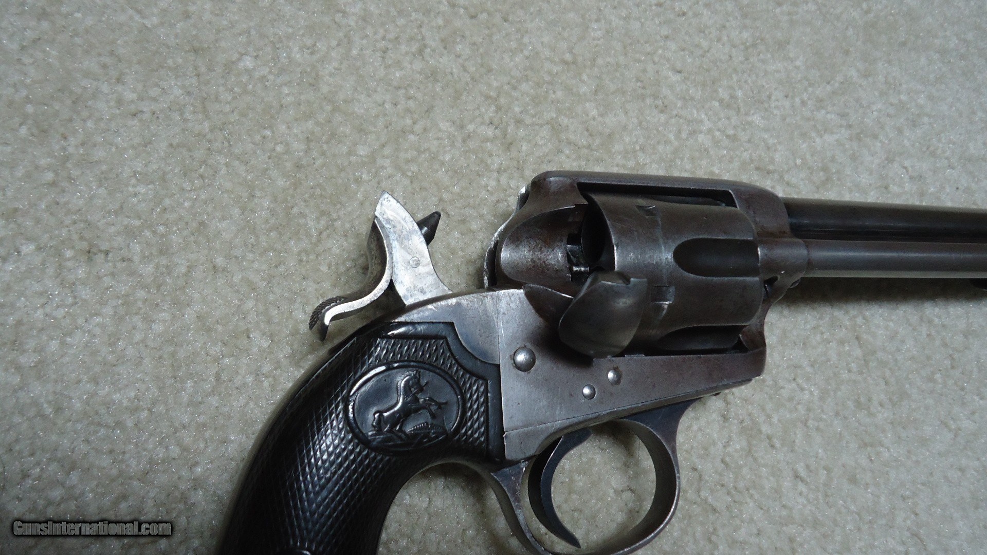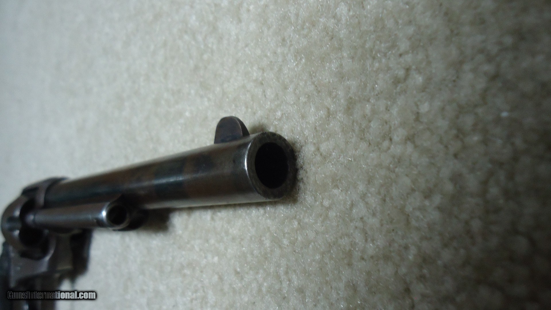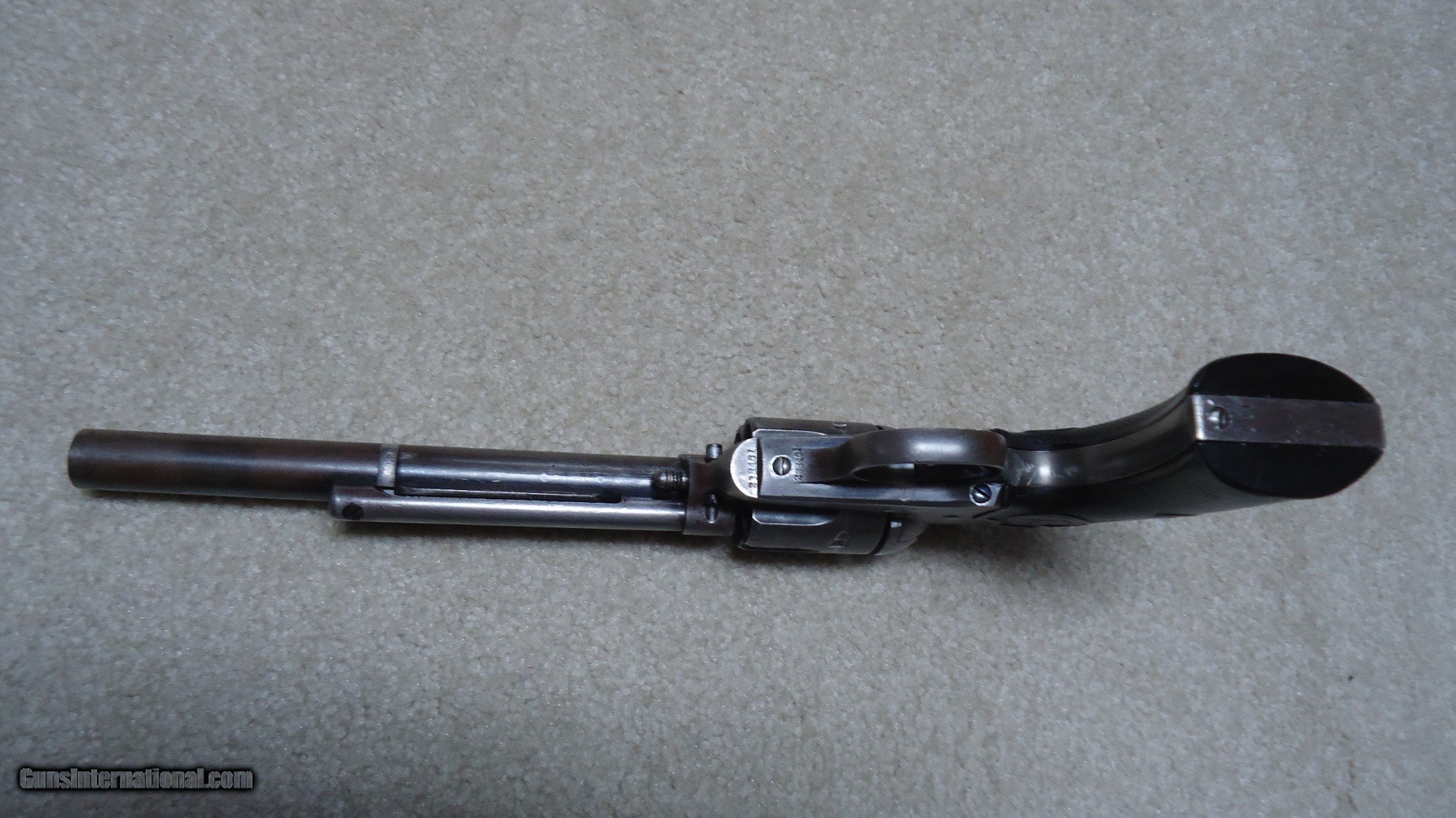 Description: BISLEY IN SCARCE AND DESIRABLE .45 COLT CALIBER WITH 7 1/2" BARREL, #238XXX , MADE 1903, WITH FACTORY LETTER. Really difficult finding these long barreled .45s as most Bisley Models were shipped with 4 3/4" or 5 1/2" barrels with most of the production in .32-20 and .38-40 calibers. The Colt letter verifies the caliber and barrel length and shows it was sold January 12, 1903 to James Mayshan (address unavailable) Chicago and shipped to Sears roebuck & Company, Chicago, Illinois as a shipment of 1. No doubt, this James Mayshan placed his special order through Sears Roebuck. Chicago was a big meat packing center at the time with many thousands of cattle shipped there by rail each year. This example has matching serial numbers, excellent screw heads and markings including the "(BISLEY MODEL) 45 COLT" on the left side of the barrel. The front sight has not been altered and the mechanics are excellent with four clicks to the hammer, all markings and patent dates are clear, overall the gun is a mixture of mainly gray/brown with blue in the more protected areas- upper trigger guard sides, cylinder flutes, barrel tip and around ejector housing, in the ejector housing flutes, etc. Grips fit perfectly and show only normal wear, bore will brush out to excellent- shows a little leading that ought to clean out. In all, a handsome and early big caliber/long barrel Bisley with factory letter. SOLD Curio/Relic: Yes Handgun Caliber: .45 Colt Manufacturer: COLT Model: BISLEY Serial Number: 238XXX Barrel Length: 7 Condition: VG |