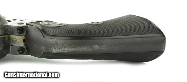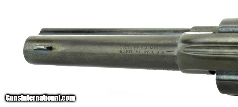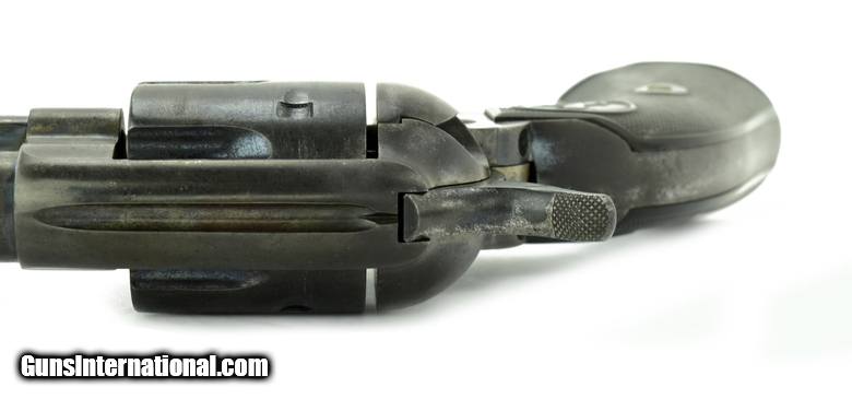 Description: Colt Single Action Army .32 WCF caliber revolver. 1st Gen made in 1916 with 4 ¾” barrel. Bore has strong rifling with minor frosting. Metal has a brown patina with some original blue in protected areas of the flutes and ejector rod housing. Frame retains some original case colors in protected areas. Action work perfectly.