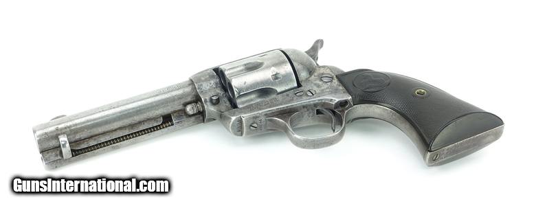 Colt Single Action Army .41 Colt caliber revolver. Manufactured in 1907. Bore has very good rifling and some corrosion. Action is crisp and works perfectly. Grips are excellent and fit perfectly. Gun has no finish but is very sharp. Edges and markings are clear and sharp. The gun has an overall pleasing appearance.