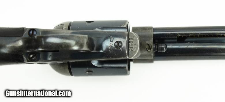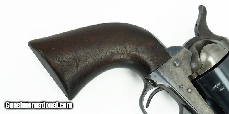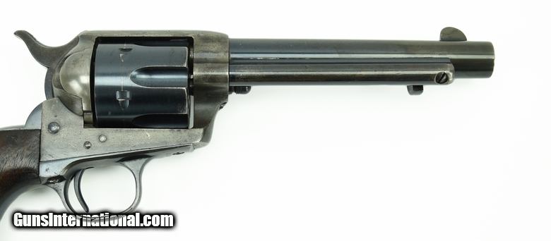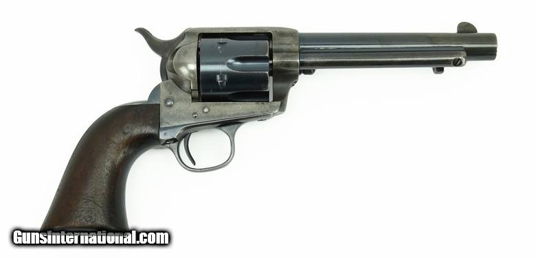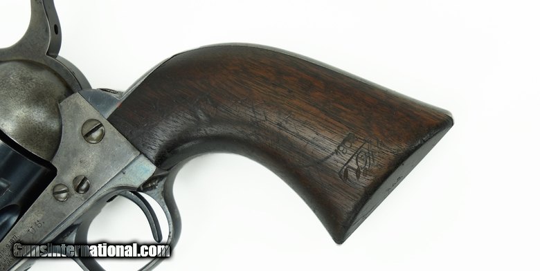 Description: Colt U.S. Army Issue Artillery Single Action .45 Colt caliber revolver. Excellent bore. Action works perfectly. Gun has approximately 70% blue and 10-15% case colors. Grips are very good with R.A.C. cartouches. Dated 1902. Cylinder is marked with R.A.C.(Rinaldo A. Carr). Inspector mark on the rear face of cylinder. Very fine U.S. Artillery. SOLD Curio/Relic: Yes |