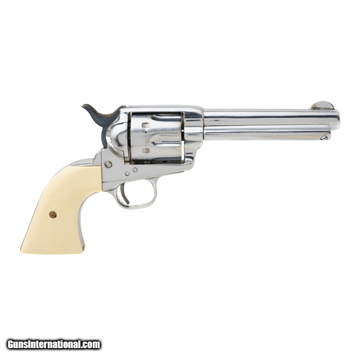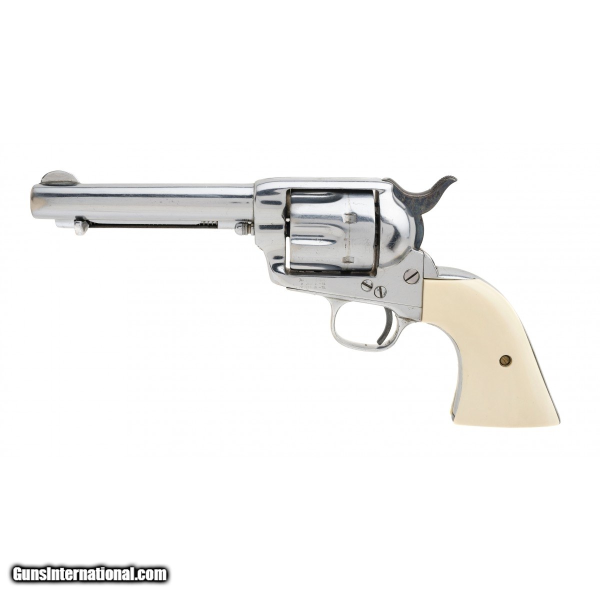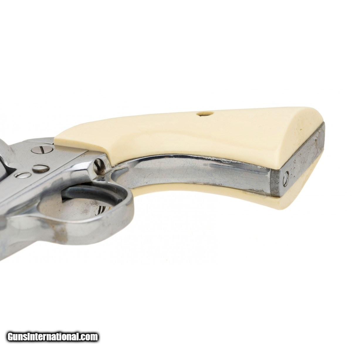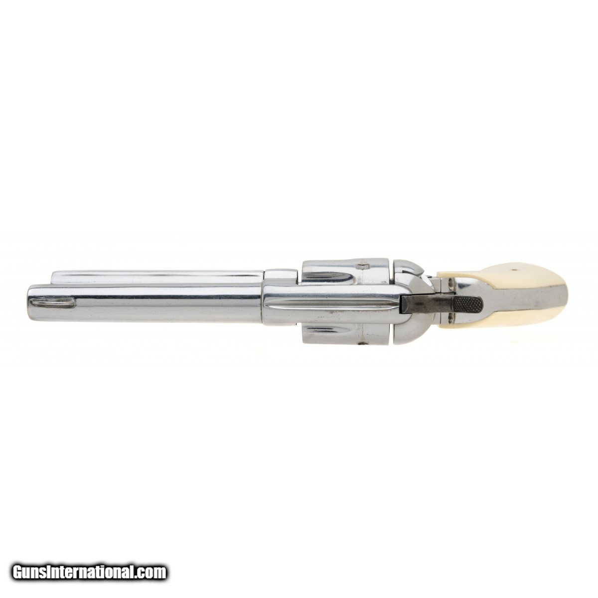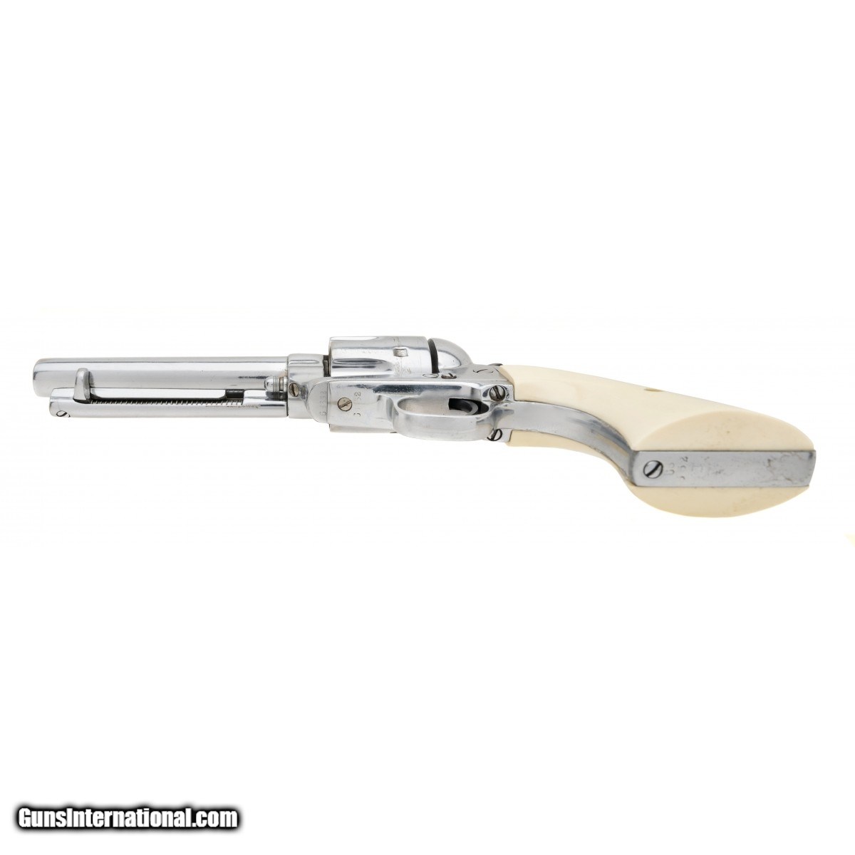 Description: "Serial number 68652. Made in 1881. 45 LC caliber with a 5" barrel. This gun has been refinished and the barrel has been shortened. The grips are two piece faux ivory. SOLD Antique: Yes |