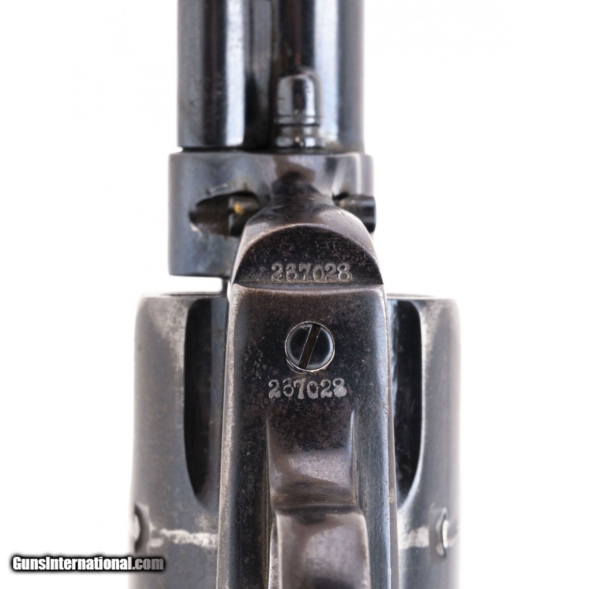 Description: " 4.75"" Single Action made in 1902. The metal has been refinished a long time ago and shows wear, mainly on the grip frame. The markings are all clear and legible. The action works well. The bore is very good with some areas of pitting. Has great looking old Mexican silver and gold grips. A vintage Colt Single Action that made its way back from Mexico. SOLD Curio/Relic: Yes |