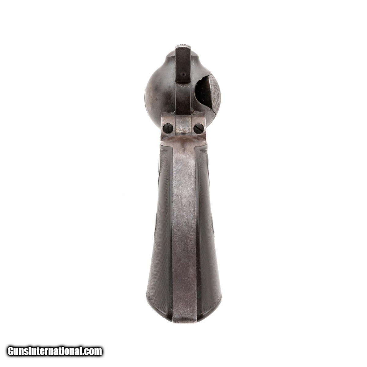 Description: " SN: 207679. Made in 1901, .45 LC with a 7.5"" barrel. Bore is good, lightly frosted with good rifling. 1st Gen Single Action Army. The barrel and ejector rod have been cleaned, the rest of the gun has a gray patina with some pitting. The grips are very good with no large chips or cracks. Good condition overall. Consignment. SOLD Curio/Relic: Yes |