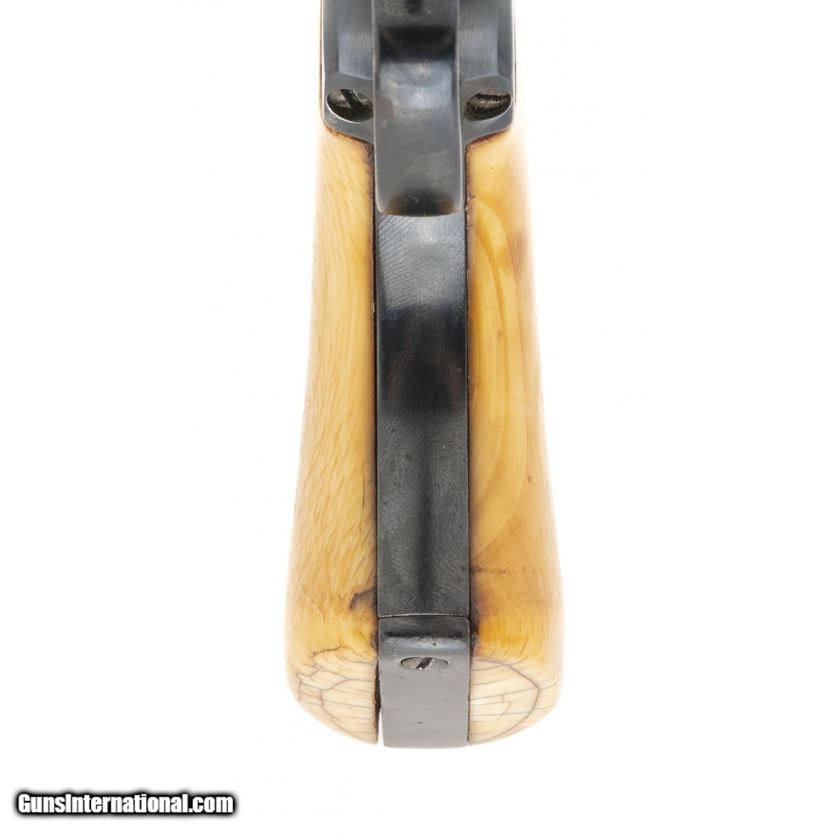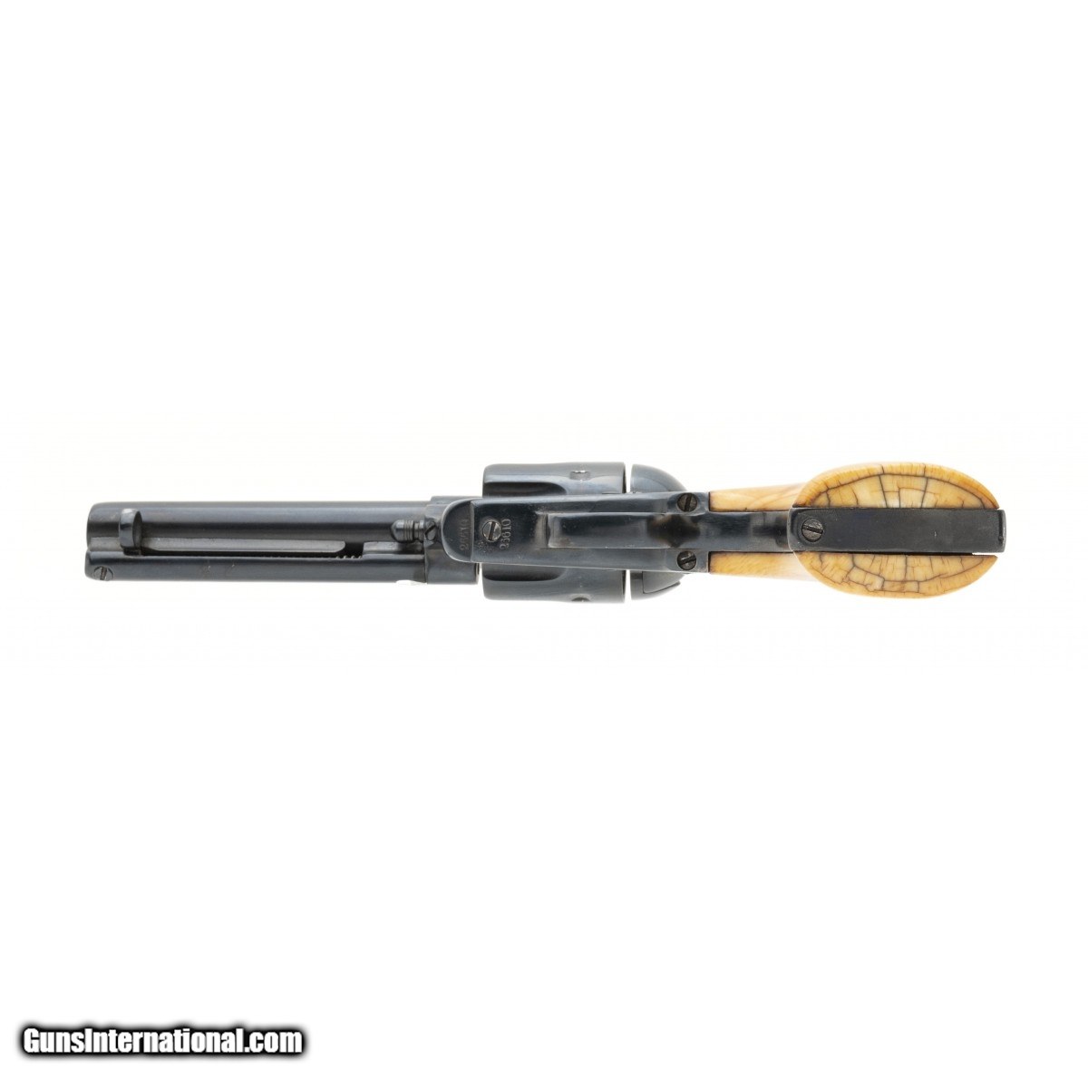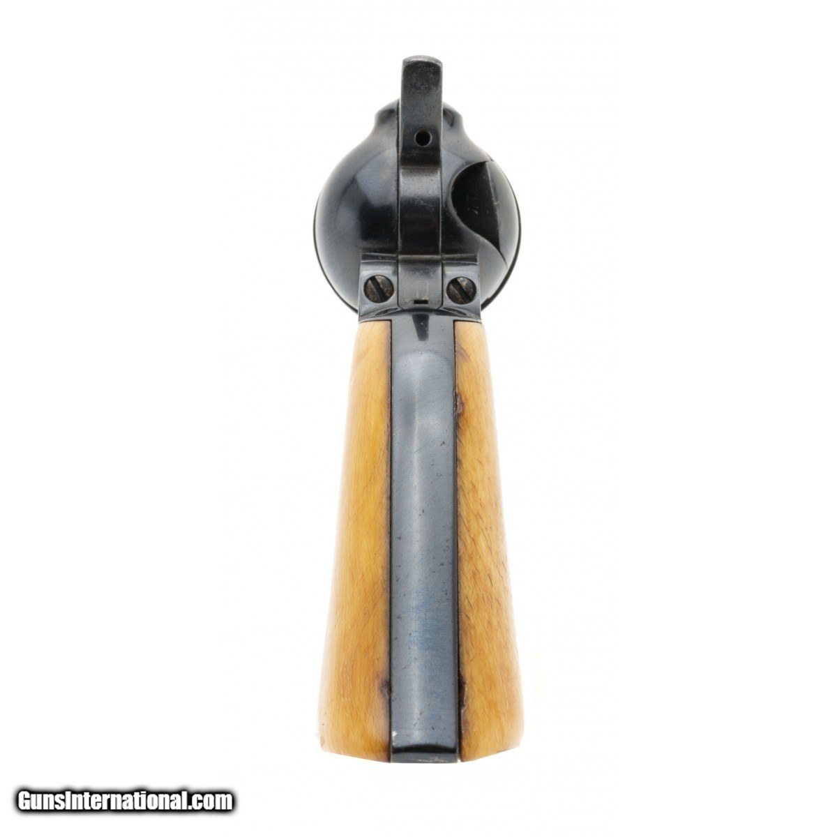 Description: " 1st Generation Colt Single action revolver with 4.75"" barrel, made in 1876. The serial number is 26610. The bore is very good. The action works correctly. Has been re-barreled, cut and crowned and the front sight has been repositioned. The metal has been refinished. The grips are made of old mellow ivory and are in very good condition. Overall good plus condition. This is a black powder model DO NOT FIRE modern ammunition. SOLD Antique: Yes |