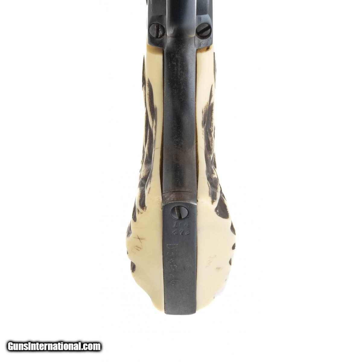 Description: " SN: 104473. Made in 1884, 45 Colt caliber with a 4.75"" barrel. Antique Colt Single Action revolver. The barrel is a replacement and has an excellent bore. The metal has been refinished and the grips are plastic imitation stag. The action needs some work but is still operational. SOLD |