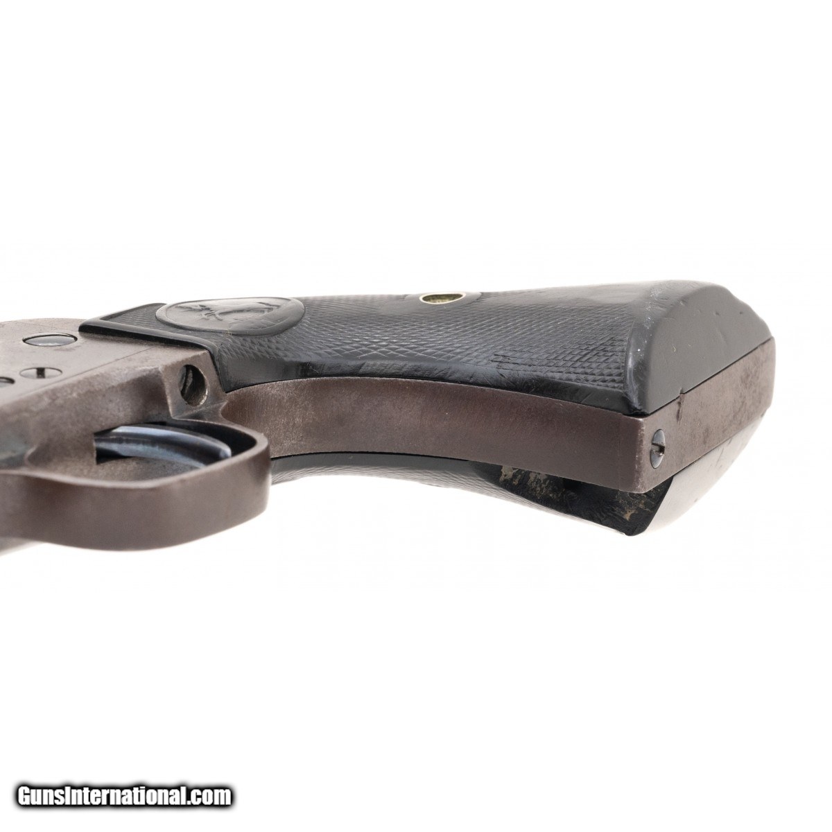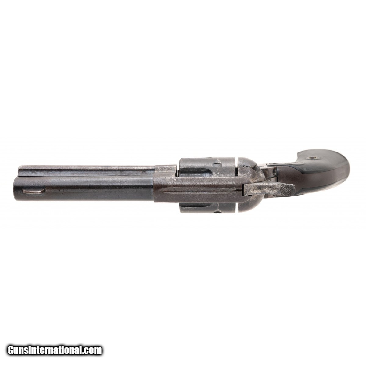 Description: "Serial number 346534. Made in 1924. 45LC caliber with a 4 ¾" barrel. Nice sharp gun with a dark bluish brown patina. Frame has traces of case colors. Grips are worn and the right hand side has a chip. SOLD Curio/Relic: Yes |