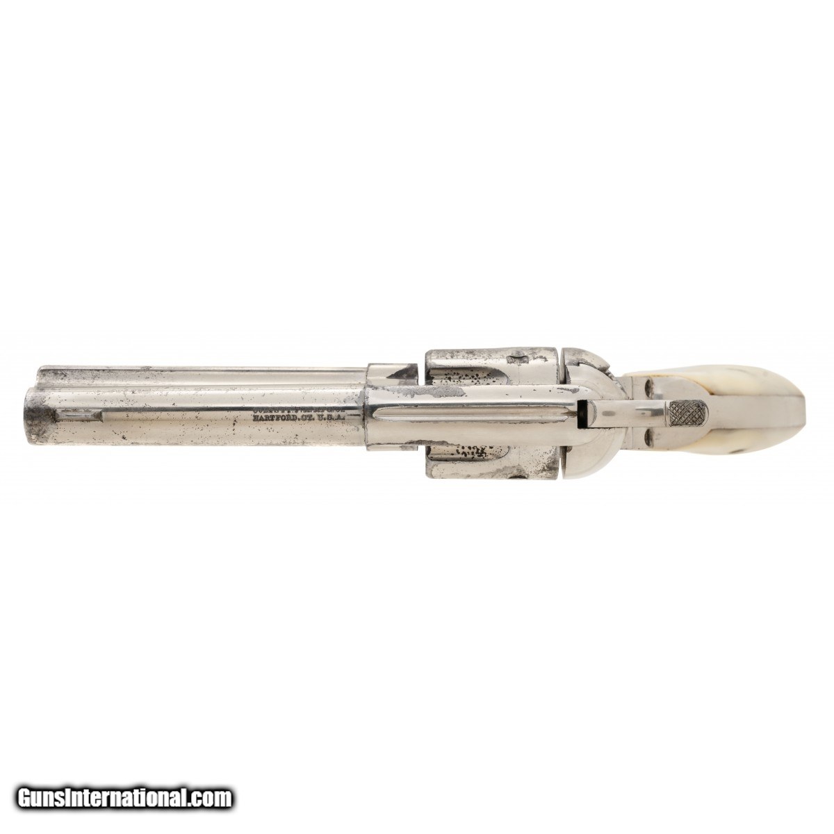 Description: "Serial number 193481. Made in 1900. 45 LC with a 4 3/4"" barrel. Very fine gun with 90% of the original finish. This gun has period pearl grips. This gun comes with a factory letter confirming all features. This gun was shipped to Blish, Mize & Silliman Hardware Co. SOLD Curio/Relic: Yes |
