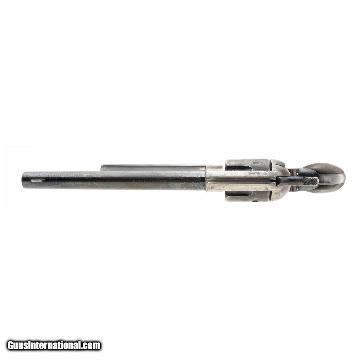 Description: "Serial Number 16650. Made in 1875, very fine condition for such an early gun. This gun is U.S. marked and inspected by A.P. Casey. Gun has 70% of the original Colt blue that is lightly fading mixed with patina. Very good case colors are on the frame. Grips have the initials “WA" carved into the left hand side. A small chip is out of the bottom corner on the left hand side. Gun is all matching and has all proper U.S. markings. A.P. Casey is one of the hardest inspectors to come by. This gun comes with a copy of a letter of authentication from John Kopec. In his opinion, this gun was refurbished at the factory. Very fine early Colt Single Action Army that was inspected by one of the scarcest inspectors. SOLD Antique: Yes |
