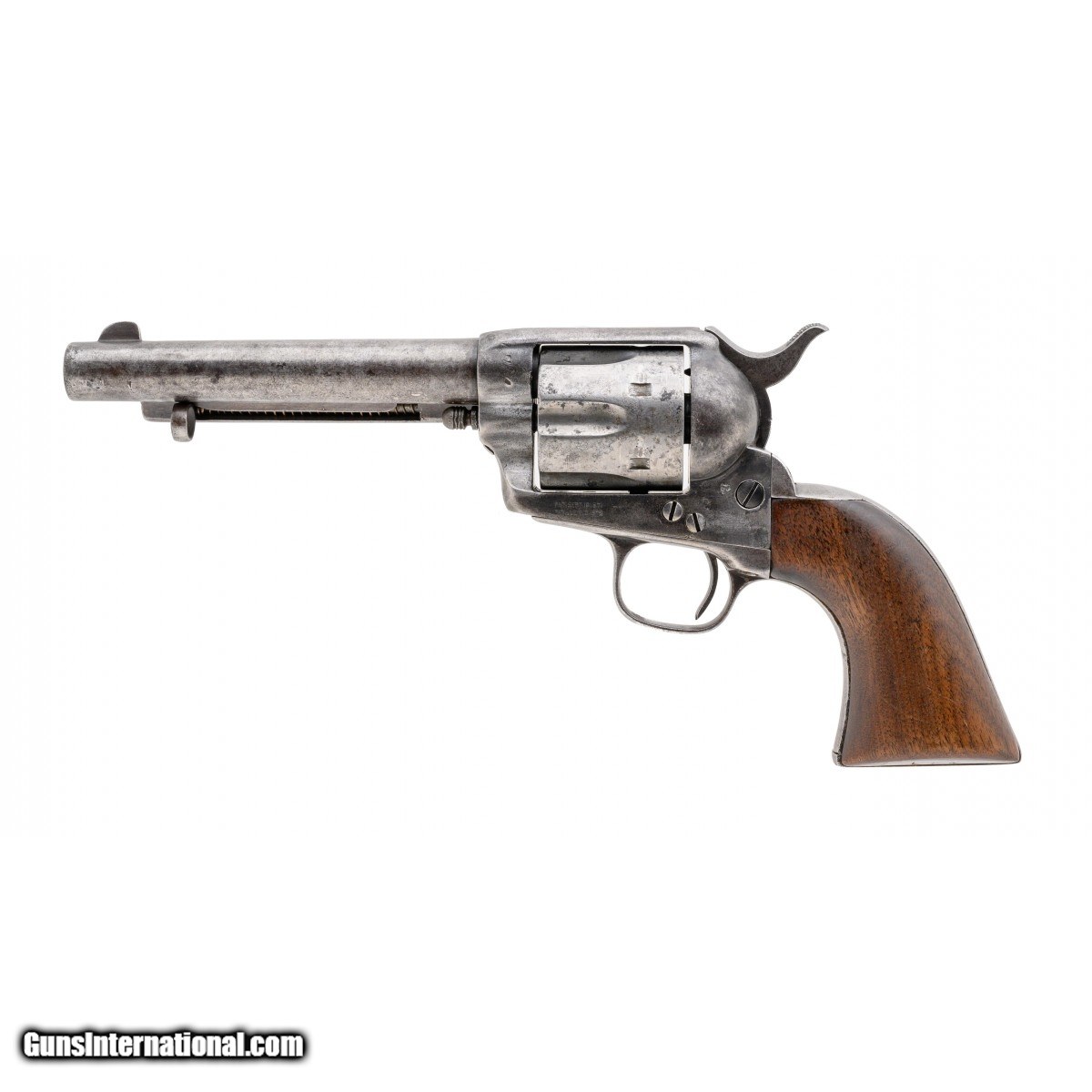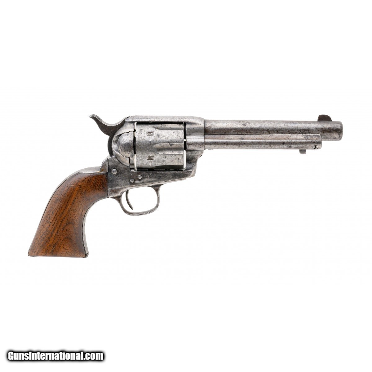 Description: " Serial number 32081. Made in 1876. 45LC caliber with a 5 ½" barrel. Metal has a light gray patina. Barrel has been shortened. Some parts are mismatched. The frame is a US martially marked and has the scarce Louis Draper marking. Grips are refinished. This gun has a factory letter and it as shipped to the U.S. Government. Consignment. SOLD Antique: Yes |