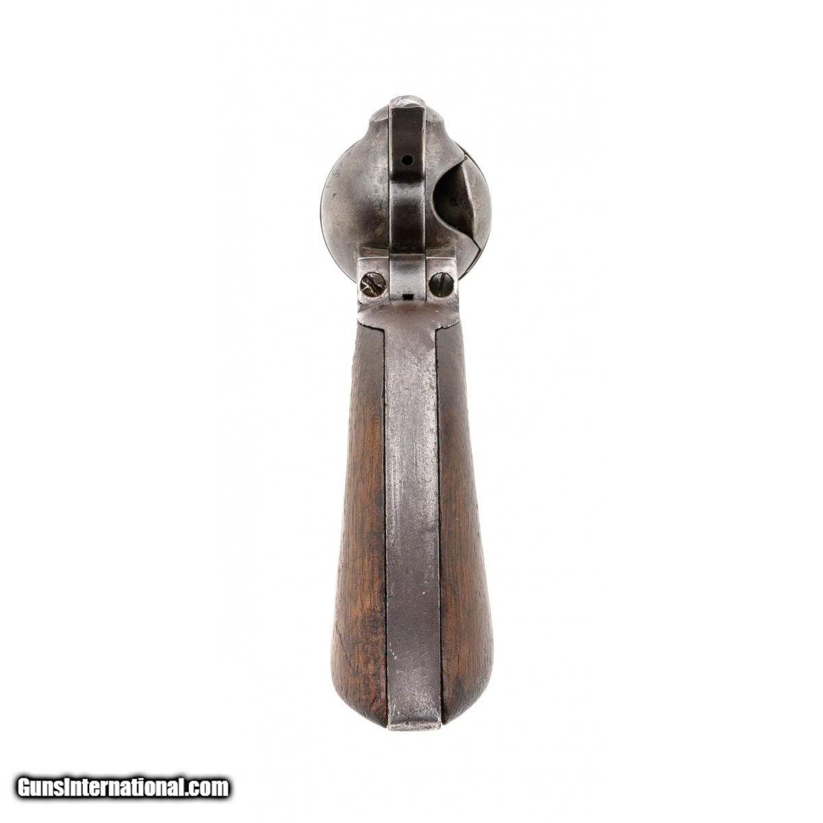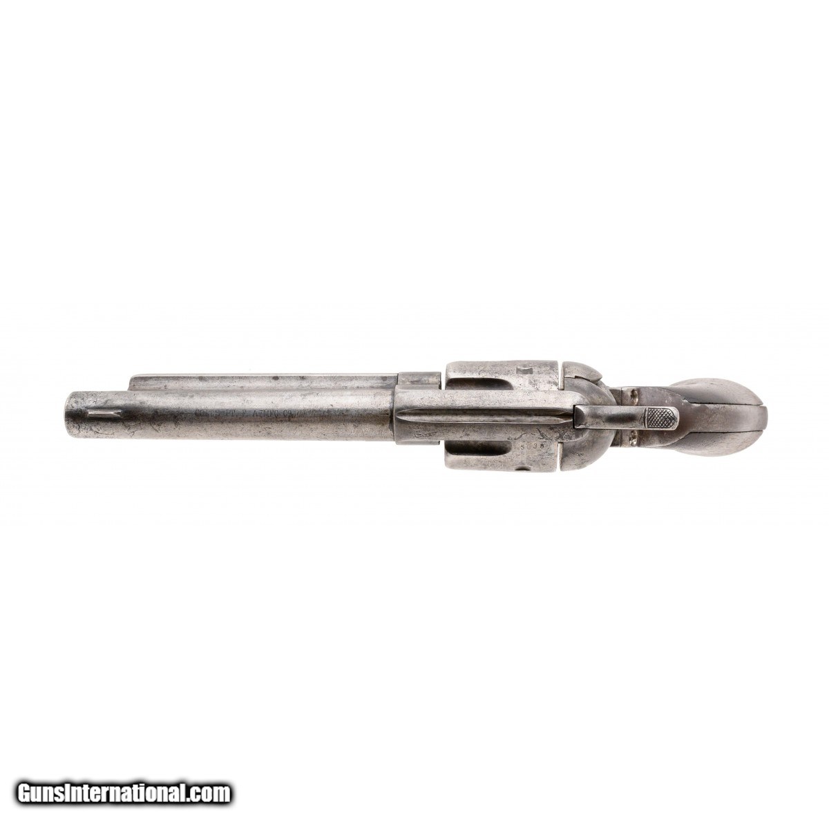 Description: " Serial number 5601. Made in 1874. 45LC caliber with a 5 ½" barrel. This gun has had extensive restoration and is more of a “put together Artillery. The frame has been re-numbered with spurious US markings applied. The cylinder has also had the serial number re-applied. Overall, this gun has a very pleasing even re-applied patina. Its very possible that this gun was made into an artillery model. SOLD Antique: Yes |