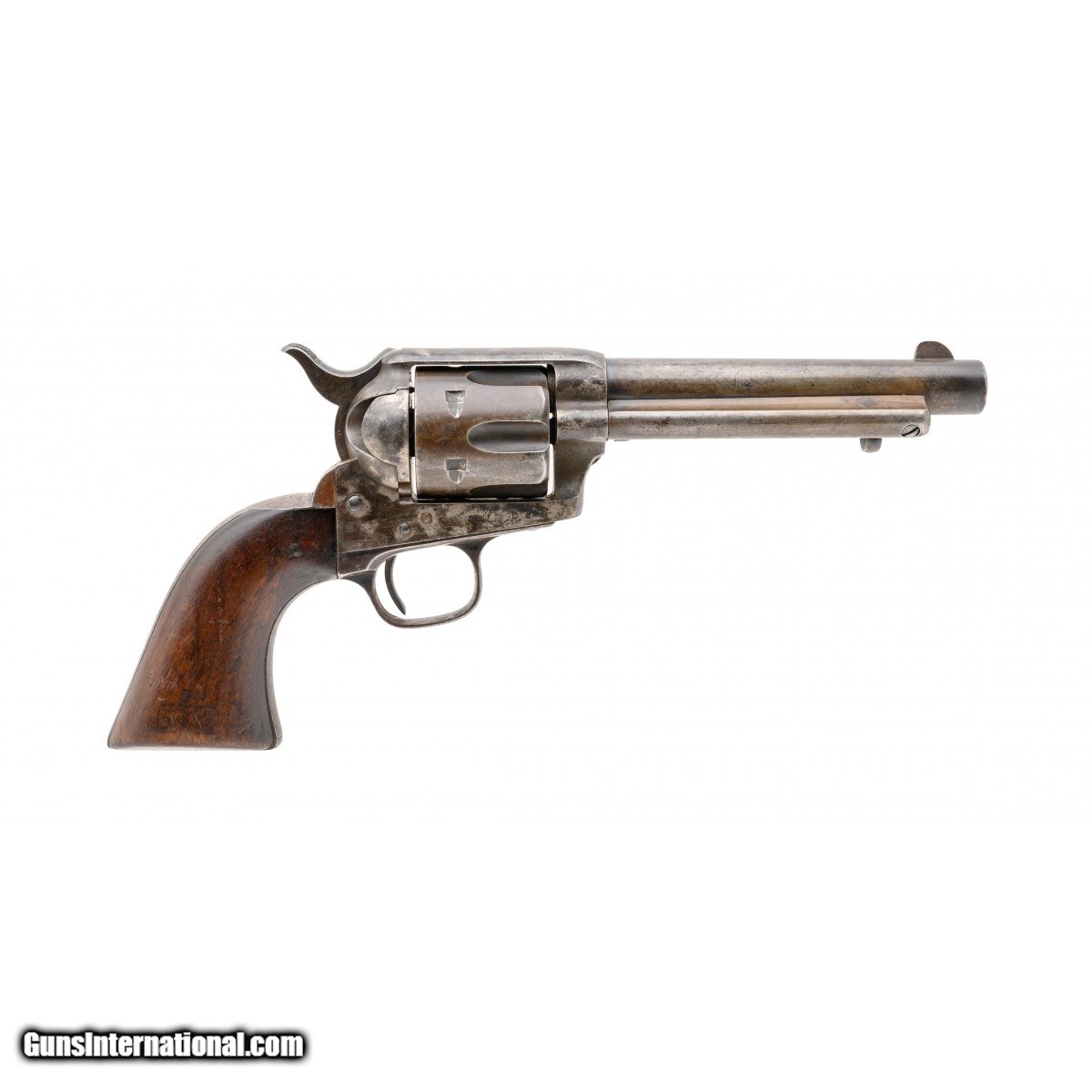 Description: " Serial number 1689. Made in 1874. 45 LC caliber with a 5 ½" barrel. This is a nice sharp gun with a dark gray patina. The numbers are correctly mismatched as the Artillery model Colts were made up from Cavalry models that had been disassembled, refurbished and re-assembled making no effort of trying to match the parts by serial number. Trace amounts of original blue remain in the protected areas. Original case colors remain in protected areas. The grips are very good and dated 1903. SOLD Antique: Yes |