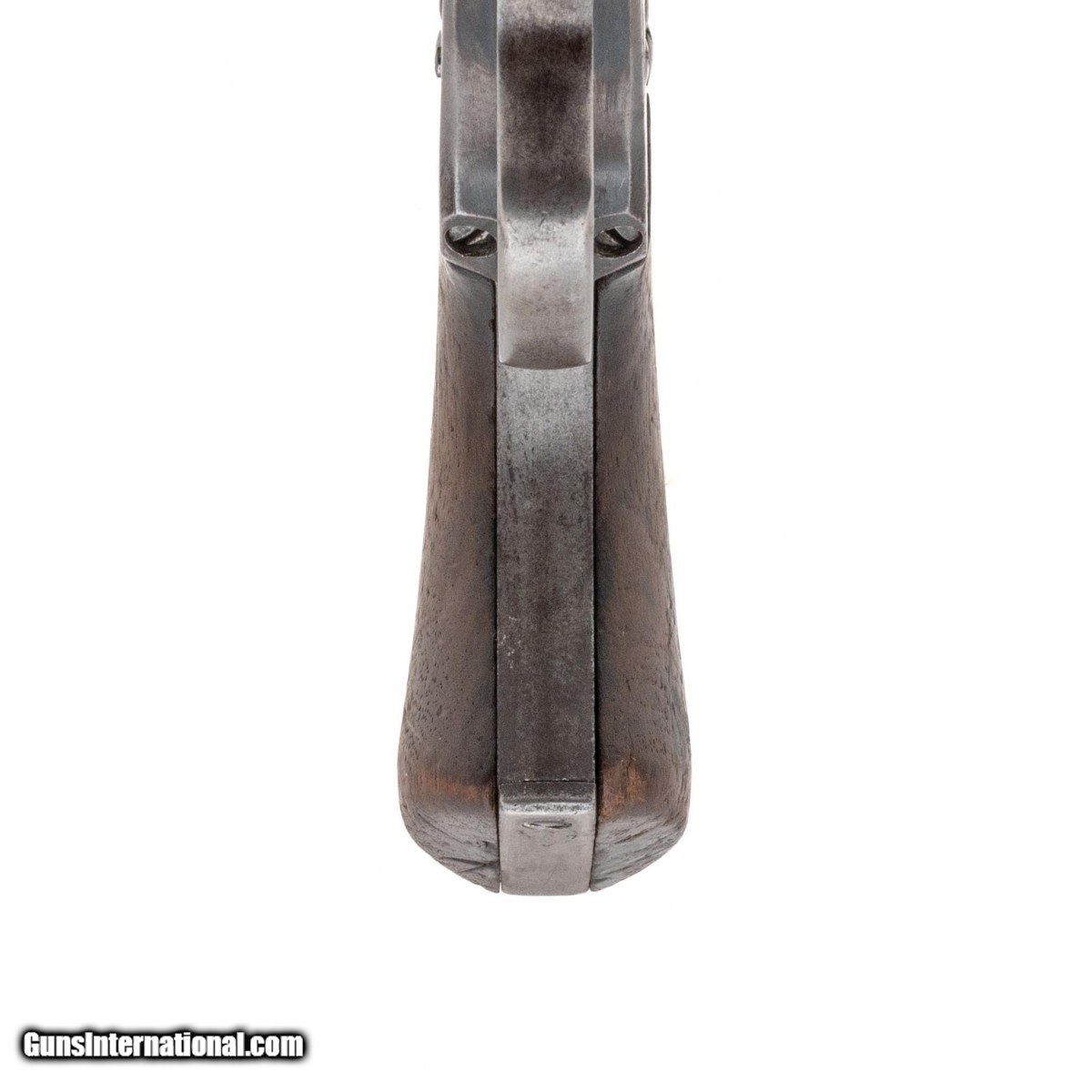 Description: "Serial number 32075. Made in 1876. 45 LC caliber with a 5 1`/2" barrel. Very fine condition with 305 of the original blue on the barrel. The frame still has good visible case colors in protected areas. The grips are original Colt grips, but off of a different gun since there are no ordnance markings. This gun comes with a letter of authentication from noted Colt Single Action expert John Kopec. Mr. Kopec makes note of the replacement grips, other wise this gun is completely original! SOLD Antique: Yes |
