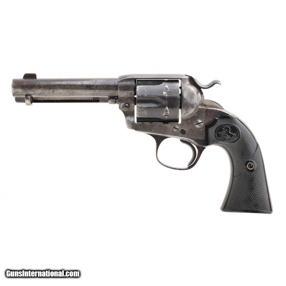 Description: "Serial number 292420. Made in 1907. 45LC caliber with a 4 ¾". Nice sharp gun with a dark gray patina and some finish remaining in protected areas. Grips are very good. Action works well. SOLD Curio/Relic: Yes |