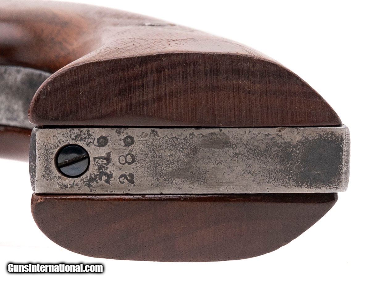 Description: "Serial number 316286. Made in 1911. 38-40 caliber with a 4 ¾" barrel. The metal has been refinished. The ejector Rod is missing and the hammer is a replacement. The action does not work. SOLD Curio/Relic: Yes |
