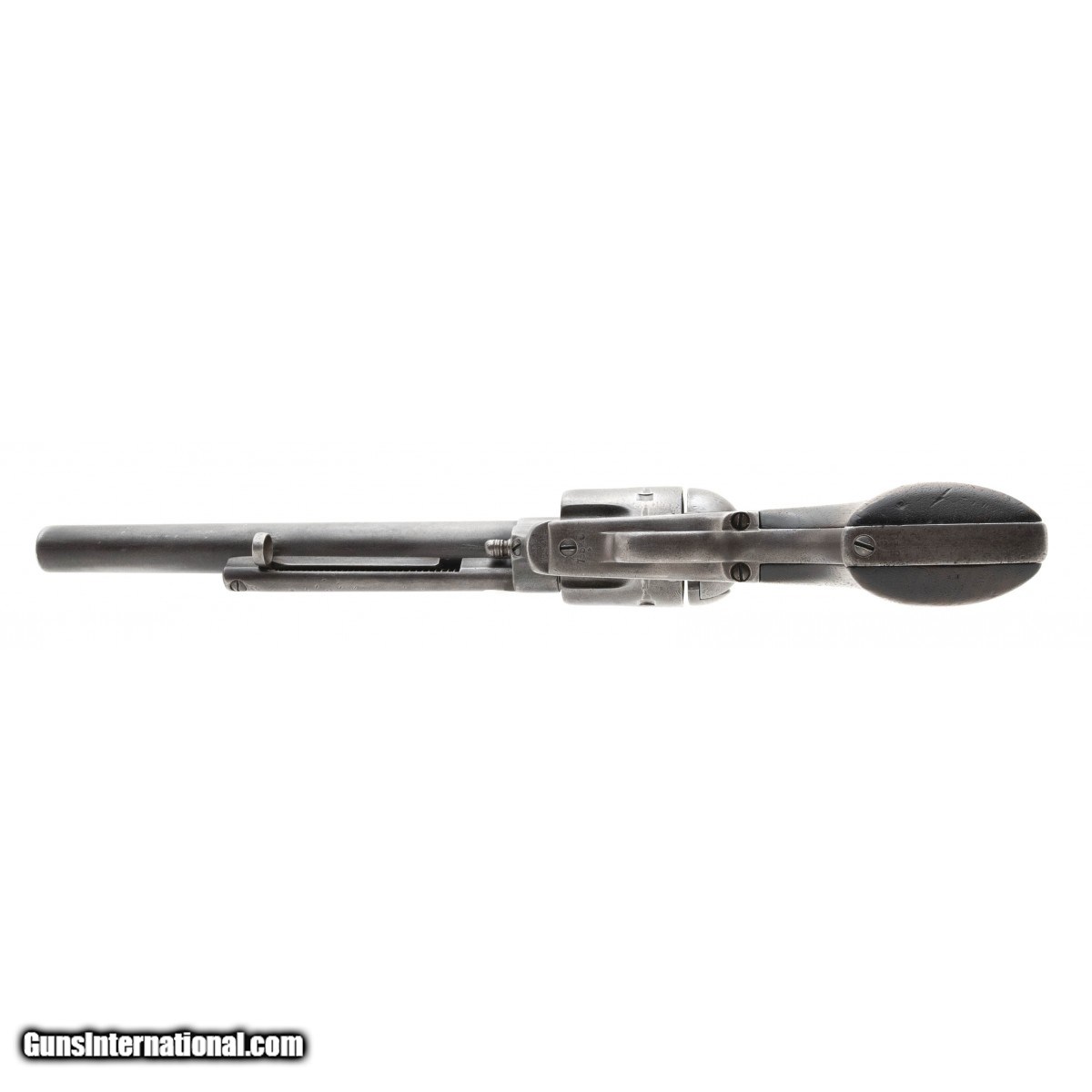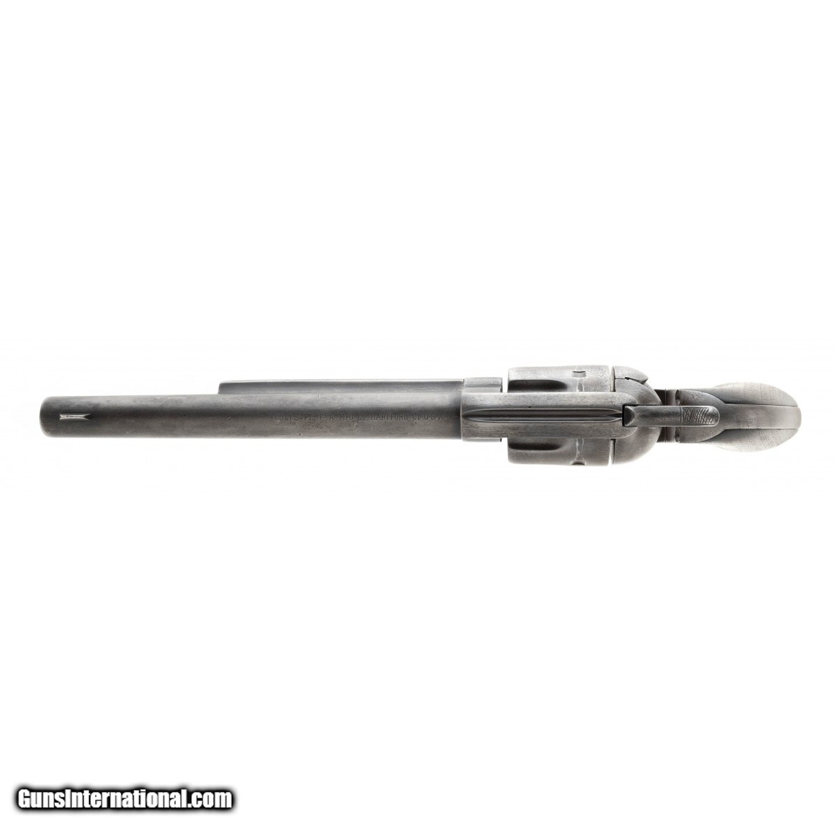 Description: "Serial number 73540. Made in 1882. 45 LC with a 7 ½" barrel. Metal has an even gray patina. Grips are very good as showing wear. Action works well. Accompanying this gun is a letter from noted Colt expert John Kopec. Mr. Kopec says this gun as most likely issued to the State of Michigan. Mr. Kopec says both the barrel and the Ejector housing are replacements. SOLD Antique: Yes |