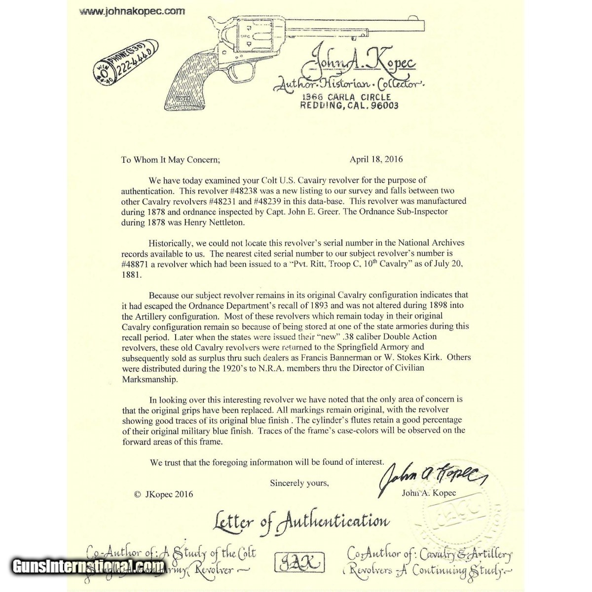 "Colt Single Action Army Cavalry Model Henry Nettleton Inspected (AC1140)
