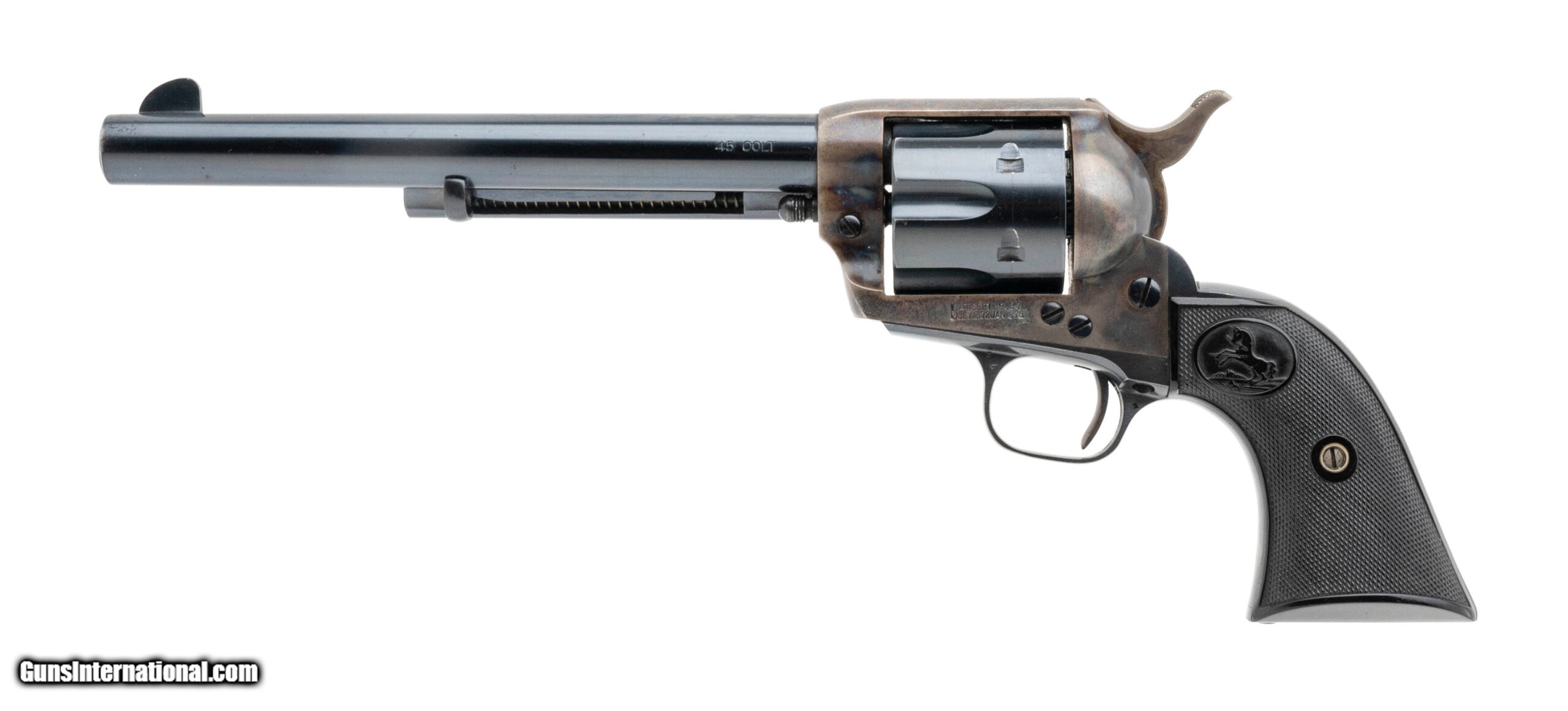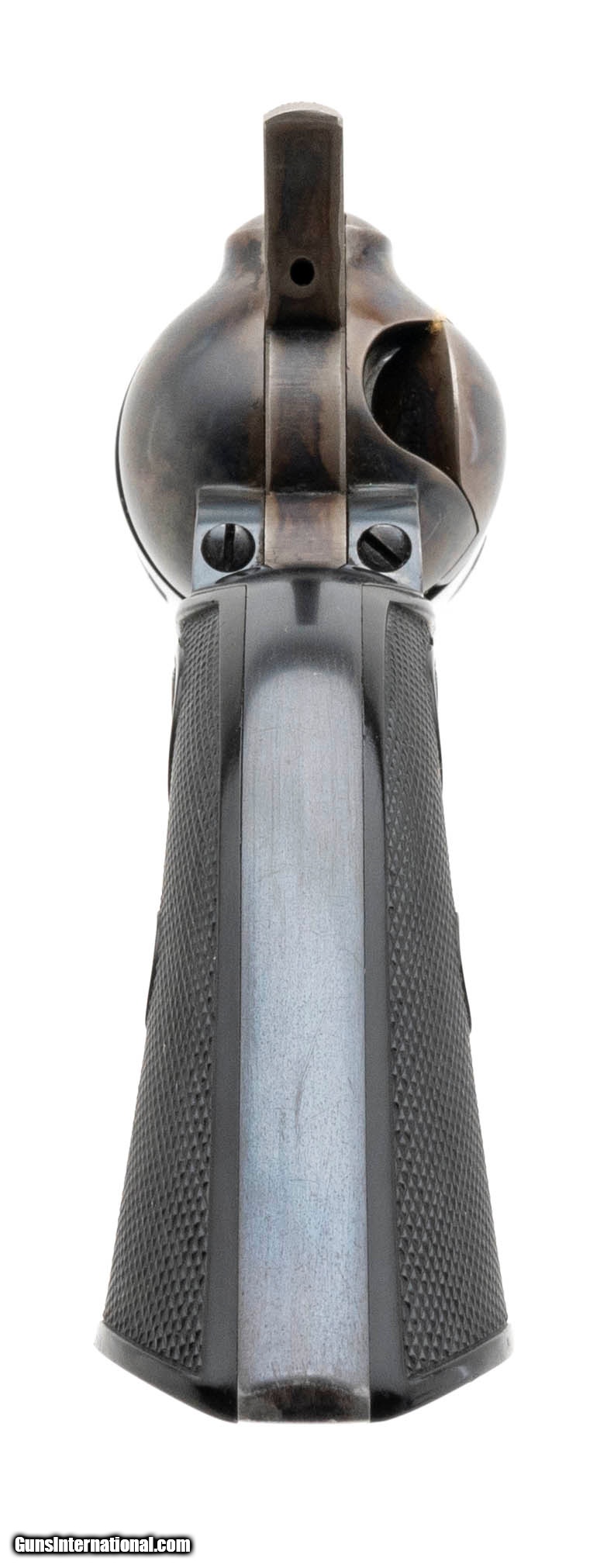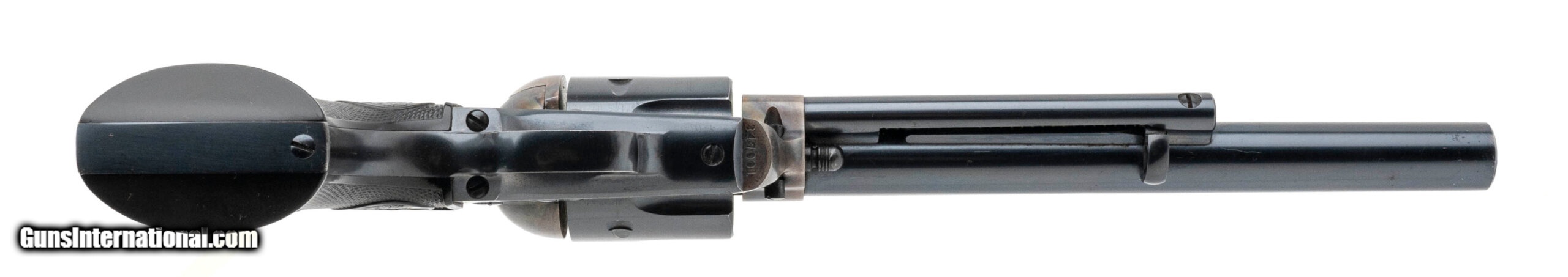 Description: "Serial number 347001. Made in 1924. 45 LC caliber with a 7 ½" barrel This gun is in near Mint condition with all of the original blue and bright case colors. Grips are excellent. This gun is in a unique Coffin case. This is an excellent gun in a very unique case! SOLD Curio/Relic: Yes |