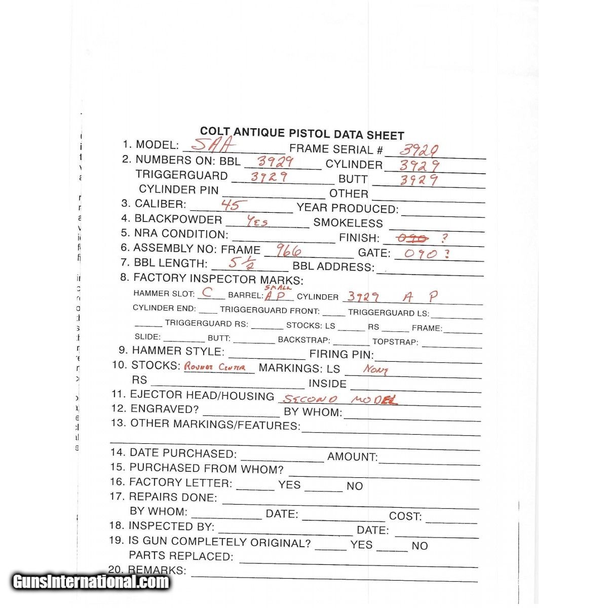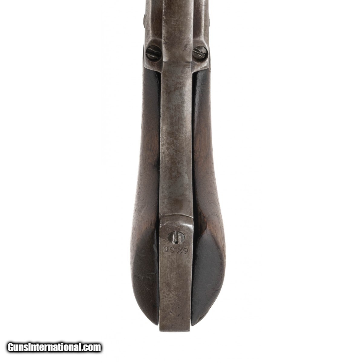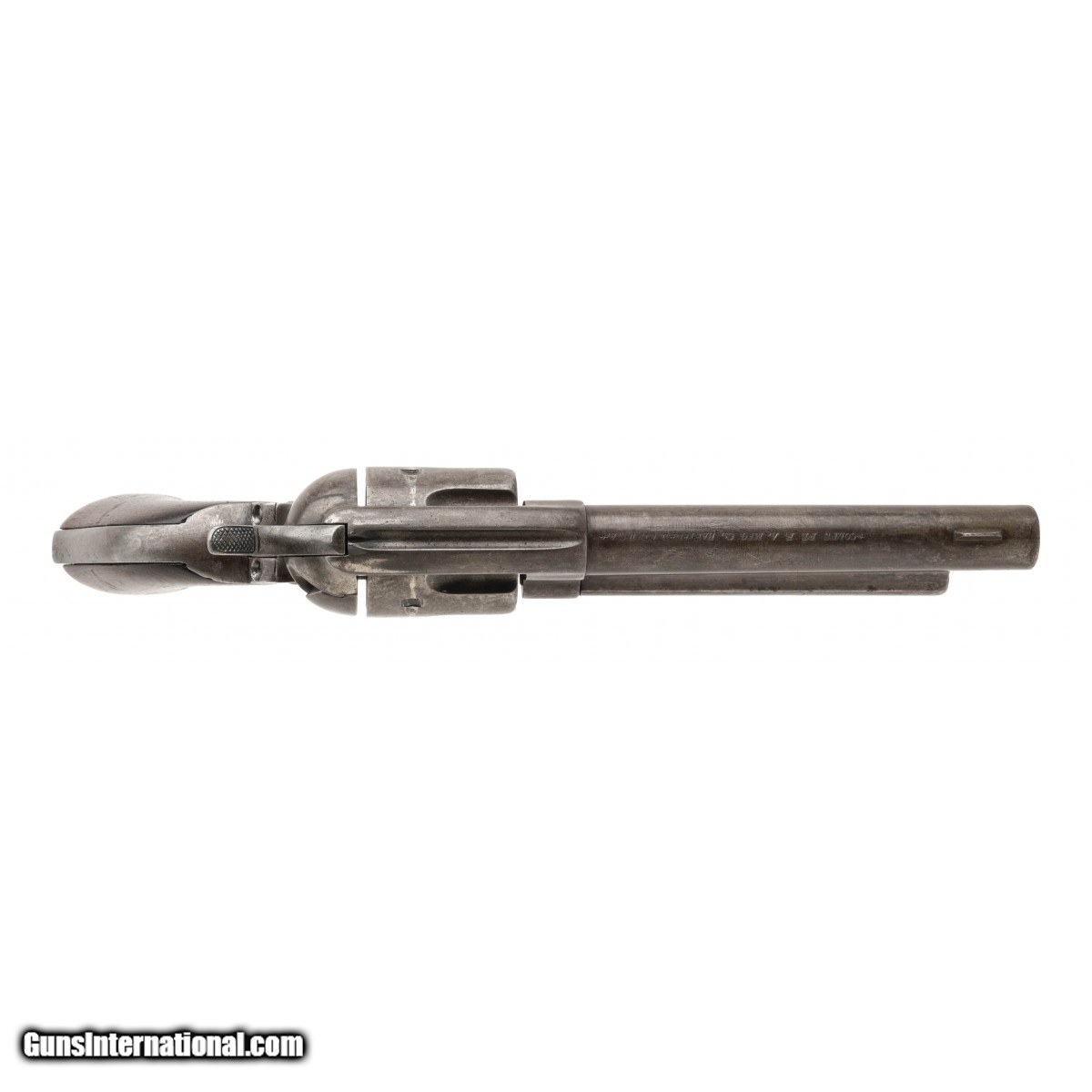 Description: " Serial number 3929. Made in 1873. 45LC caliber with a 5 ½" barrel. This gun has a light gray to brown patina with the metal being cleaned and re- aged. This gun has had the barrel shortened and some of the markings have been restored / renumbered. Some small parts are replaced as well. SOLD Antique: Yes |