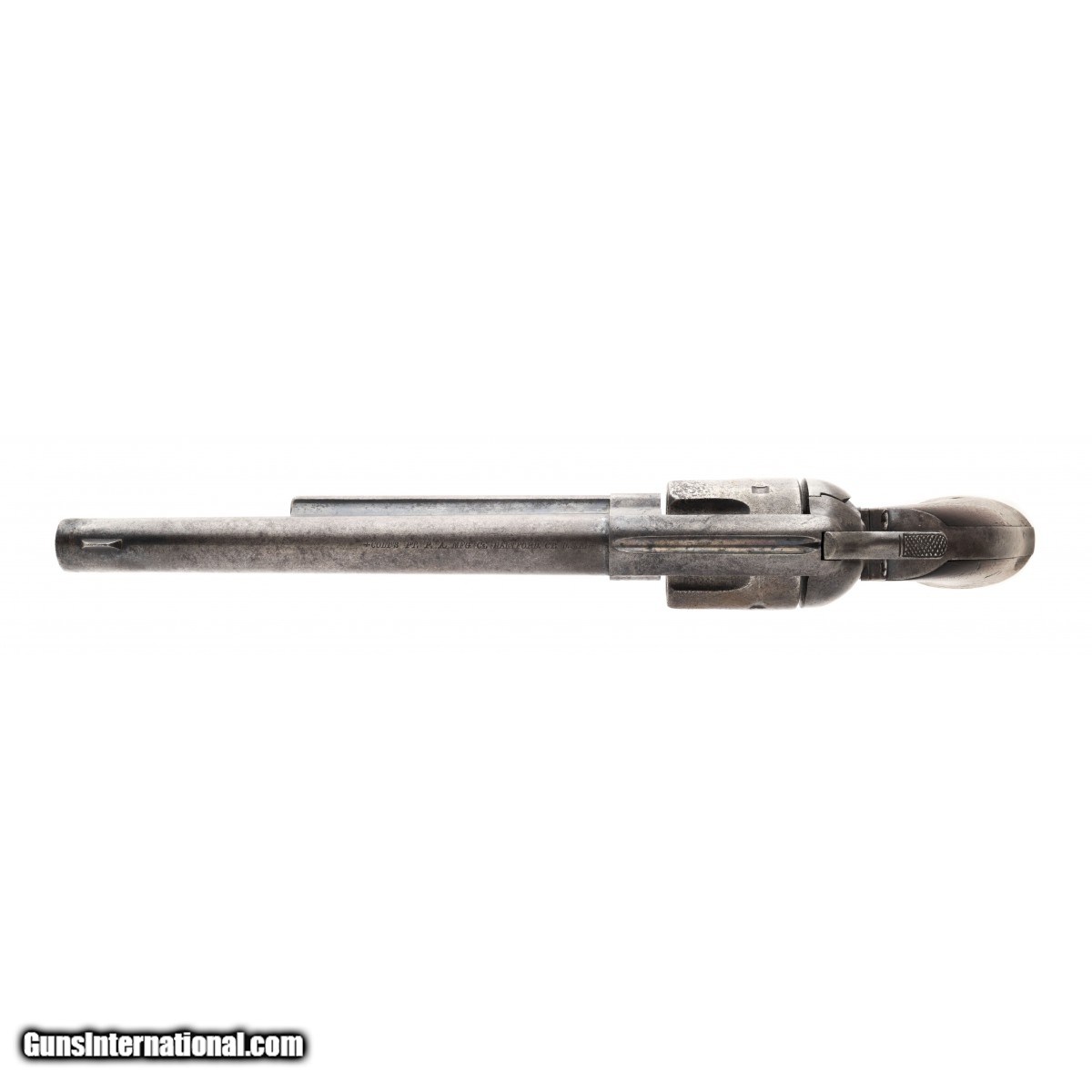 Description: "Serial number 5609. 45LC with a 7 ½" barrel. This is a cavalry model inspected by O. W. Ainsworth. This is a exceptional example. This gun has a smooth gray to brown patina on the metal with blue in protected areas. Even traces of case colors on the frame. The grips are very good and still have a visible “A" cartouche on the bottom of the grips. The cartouche on the left side is not visible due to holster wear. All numbers are matching. This gun comes with a letter from noted Colt expert John Kopec. Mr. Kopec says this is a gun that was in Lot 6 of the US Cavalry models. Lot 5 and 6 were the guns supplied to the 7th Cavalry. There are several guns in this serial range that have provenance to the Little Big Horn. This gun according to Mr. Kopec is completely correct and unaltered. Mr. Kopec awarded his Silver seal. Extraordinary Colt Custer Range Cavalry model! SOLD Antique: Yes |