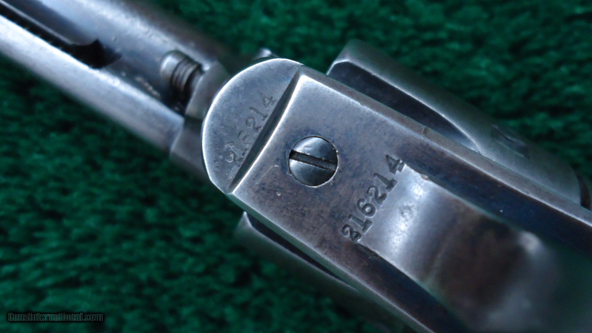 Description: 4-3/4 inch barrel with correct 2 line barrel address chambered in 38 WCF caliber. Bright shiny bore. Sharp rifling and a few scattered light pits. All matching numbers. Grips appear to be original and show similar wear as the rest of the gun. No splits or chips. Traces of blue in protected areas with the balance a gray/brown color. Excellent mechanics. Nice original Colt manufactured in 1901. Leroy Merz Antique Firearms specializes in antique and vintage Winchesters and other fine American firearms. Since 1965 Mr. Merz has taken part in the world of firearms and has been a contributor to many well known reference books. We have hundreds of additional guns in every price range at our home online. Search for Merz Antiques in google. SOLD Curio/Relic: Yes Handgun Caliber: .38-40 Winchester (.38 WCF) |
