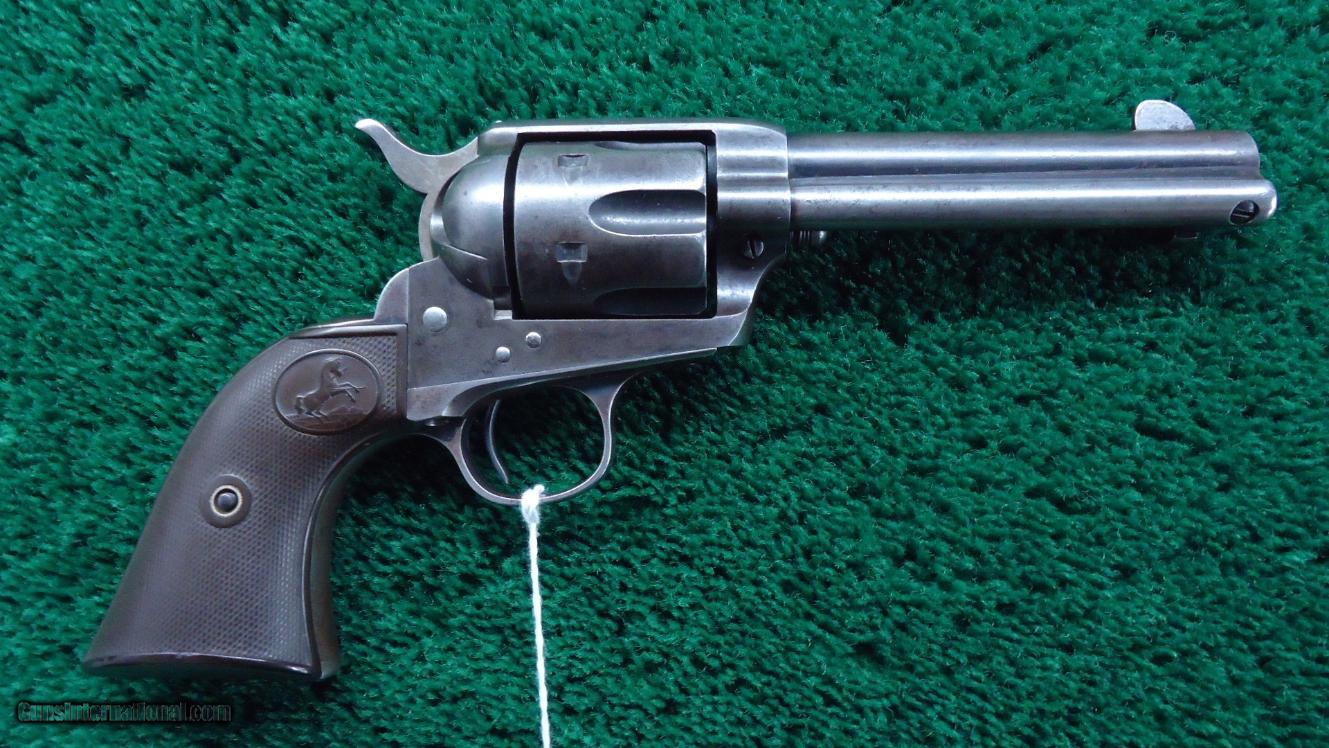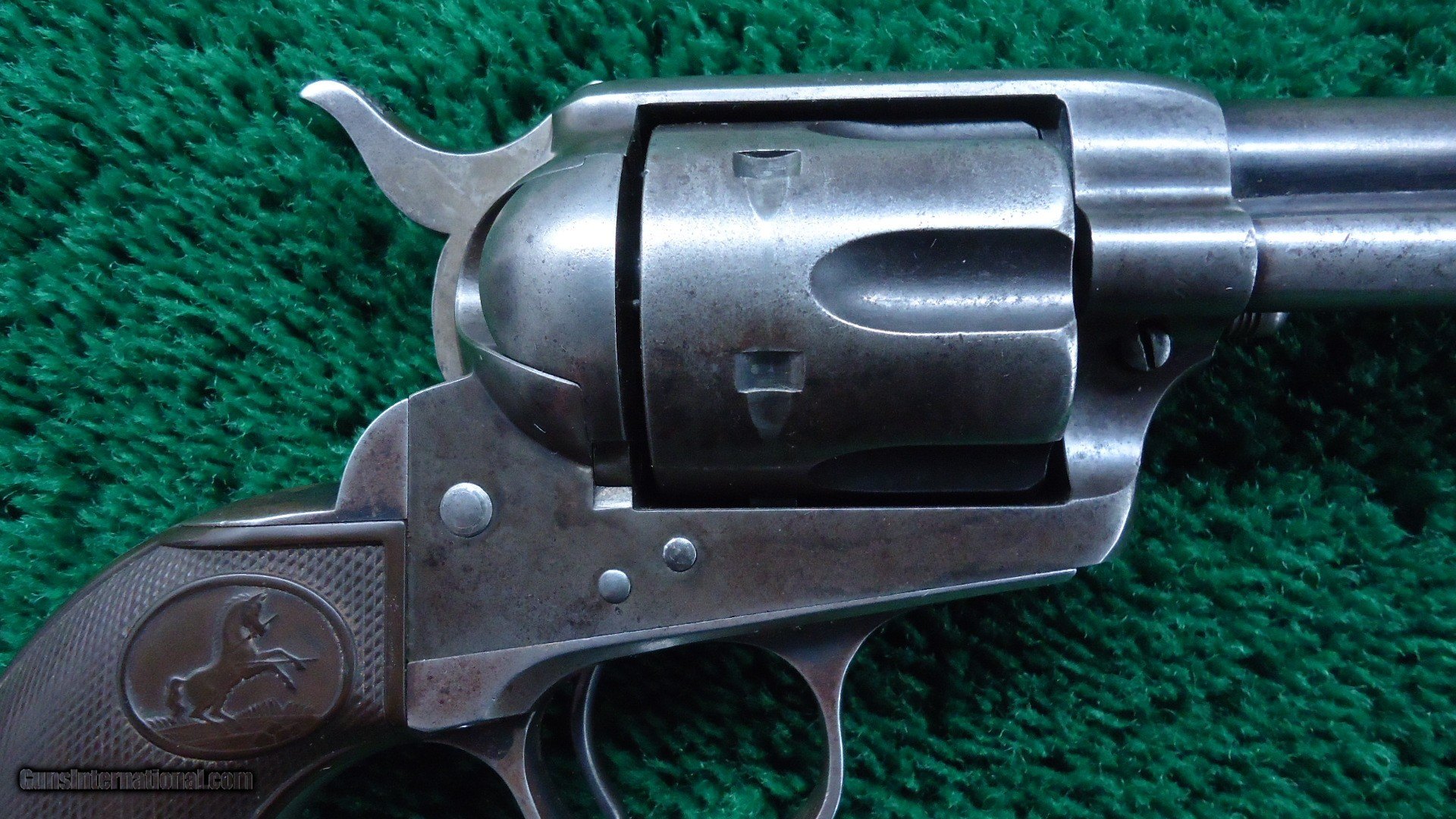 Description: 4-3/4 inch barrel with correct 2 line barrel address chambered in 38 WCF caliber. Bright shiny bore. Sharp rifling and a few scattered light pits. All matching numbers. Grips appear to be original and show similar wear as the rest of the gun. No splits or chips. Traces of blue in protected areas with the balance a gray/brown color. Excellent mechanics. Nice original Colt manufactured in 1901. Leroy Merz Antique Firearms specializes in antique and vintage Winchesters and other fine American firearms. Since 1965 Mr. Merz has taken part in the world of firearms and has been a contributor to many well known reference books. We have hundreds of additional guns in every price range at our home online. Search for Merz Antiques in google. SOLD Curio/Relic: Yes Handgun Caliber: .38-40 Winchester (.38 WCF) |