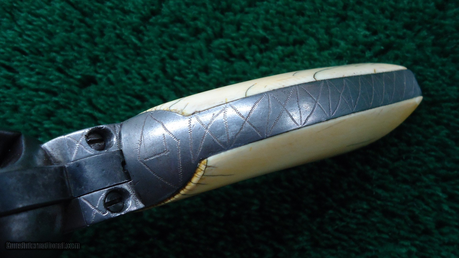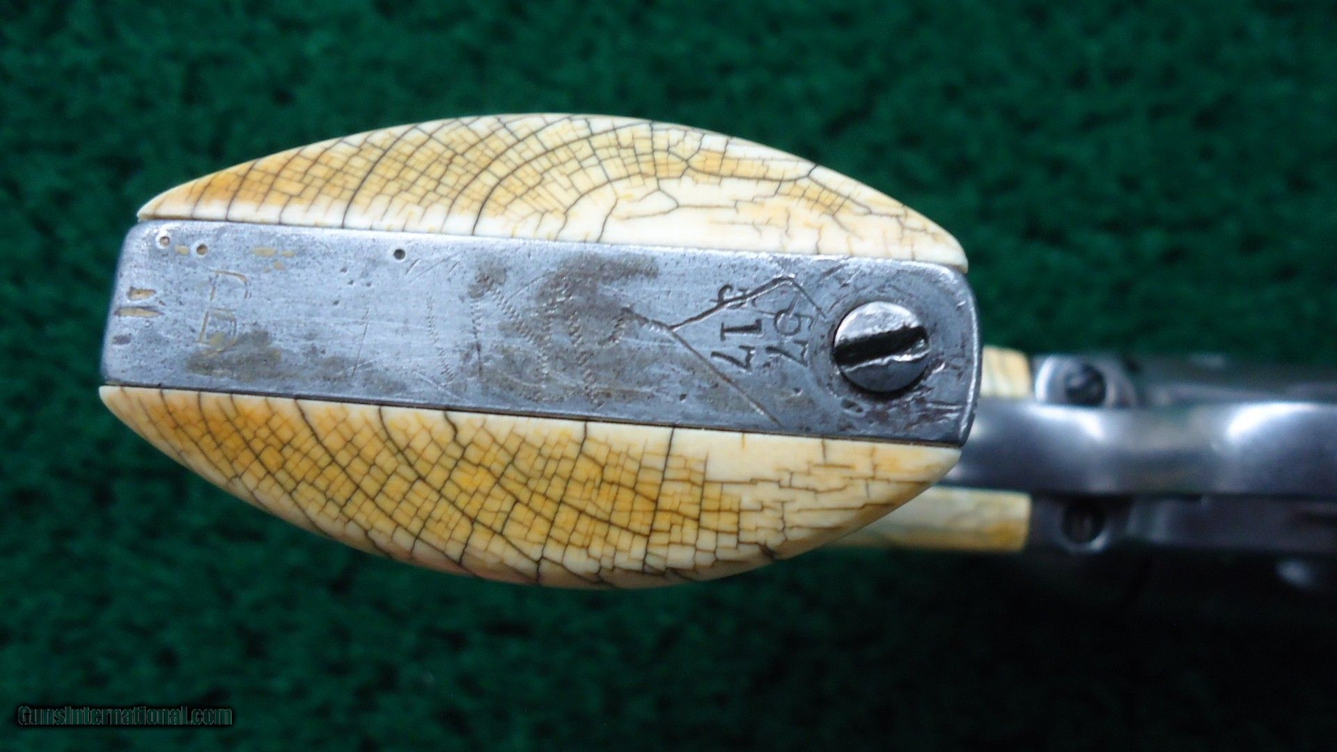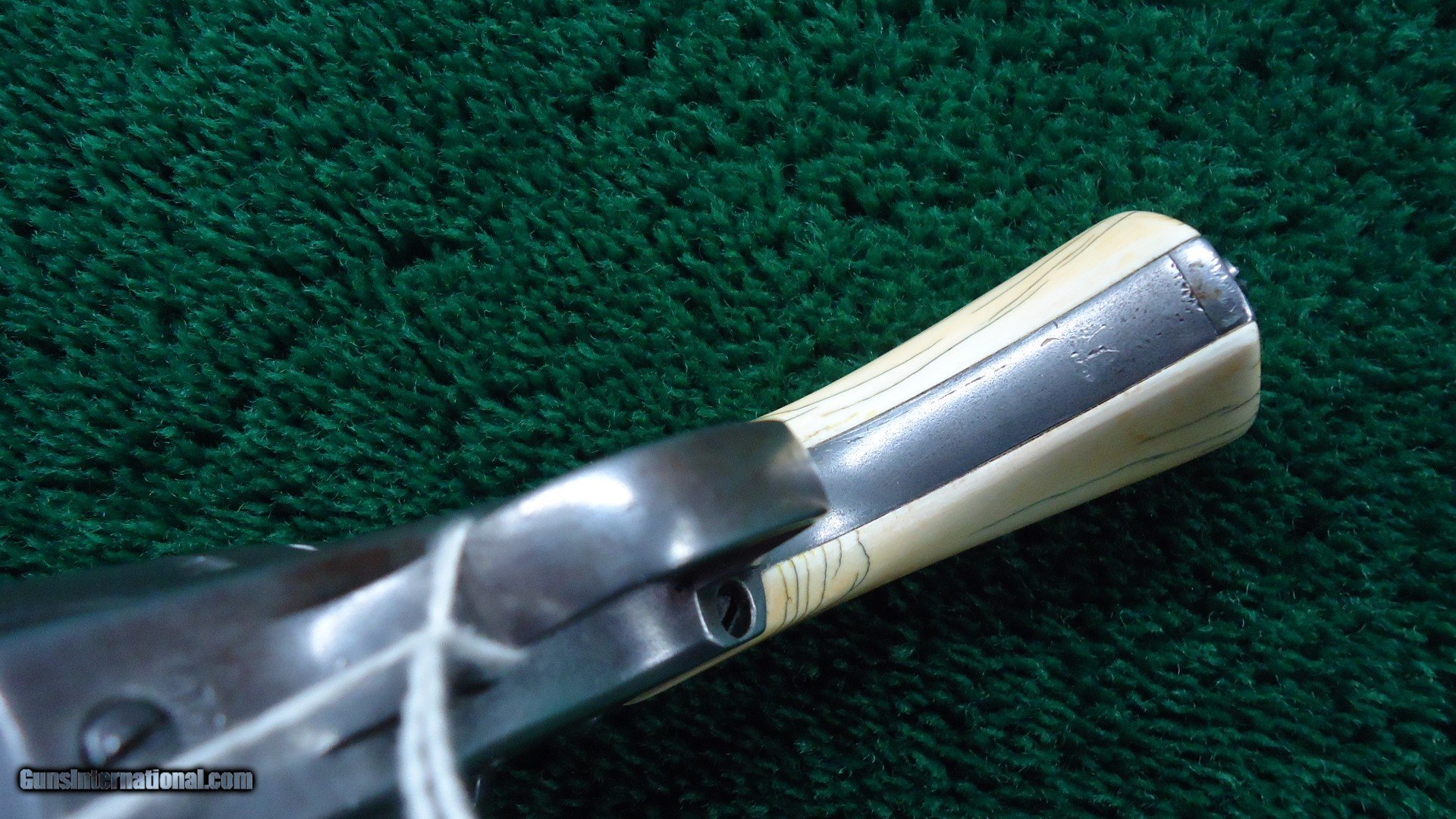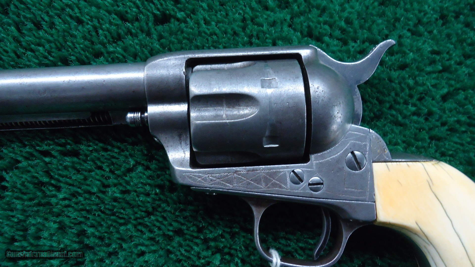 Description: 7-1/2 inch barrel chambered in 44 WCF caliber Gun is in the 57k serial range with all matching numbers. Overall metal is generally a gray gun metal patina. Clean and sharp with good markings. Excellent functioning action and good bore. Ivory grips are an aged yellow. The frame has some sort of a zig-zag design engraved on it. Sharp little gun made in 1880. Leroy Merz Antique Firearms specializes in antique and vintage Winchesters and other fine American firearms. Since 1965 Mr. Merz has taken part in the world of firearms and has been a contributor to many well known reference books. We have hundreds of additional guns in every price range at our home online. Search for Merz Antiques in google. SOLD Antique: Yes Handgun Caliber: .44-40 Winchester (.44 WCF) |