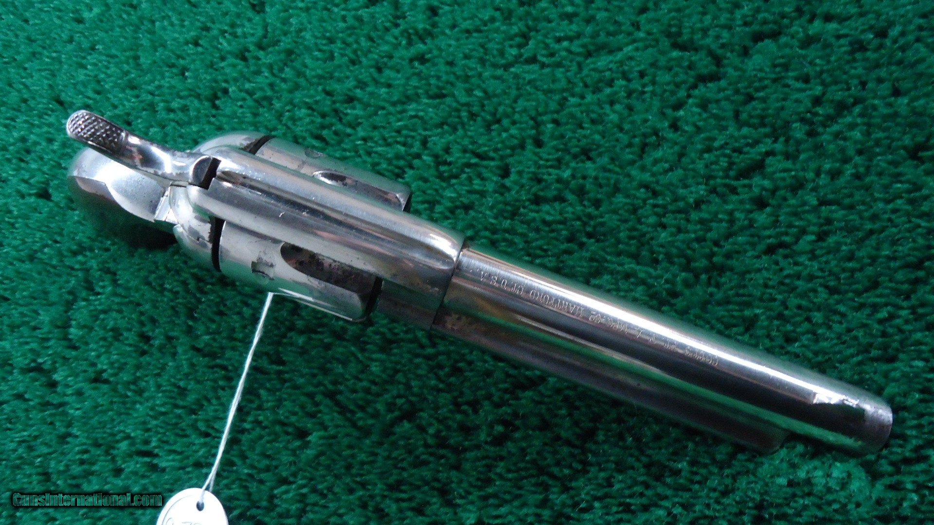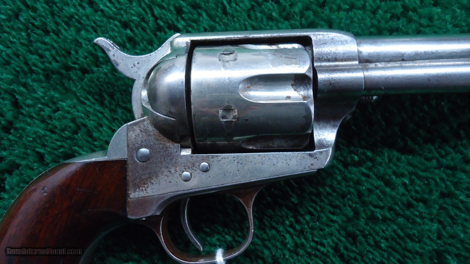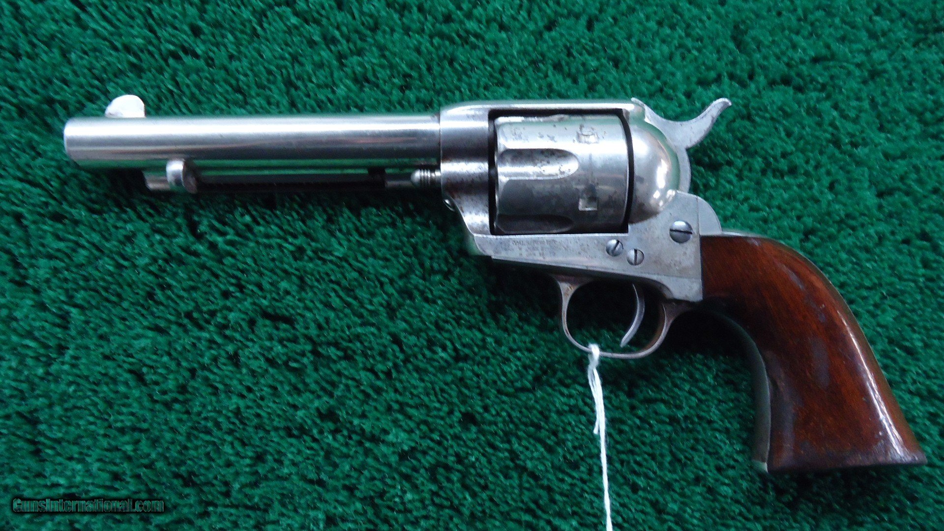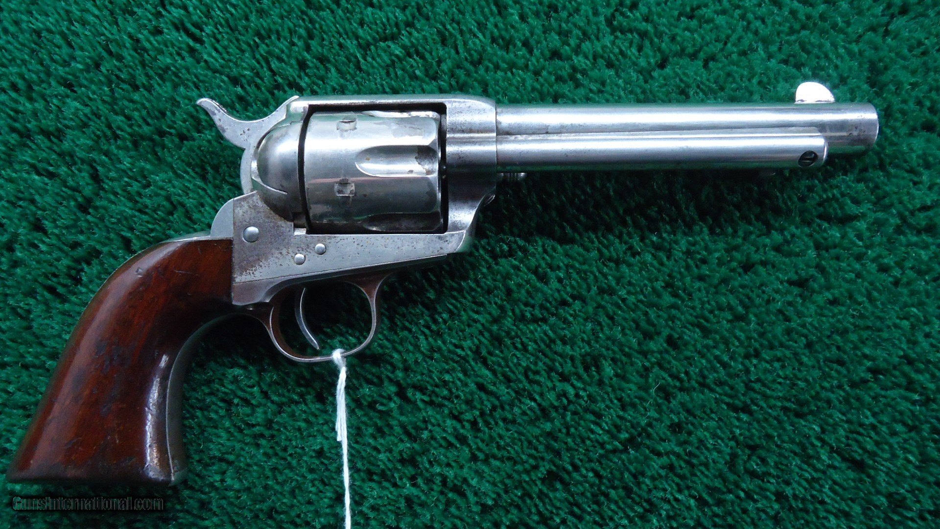 Description: Fine early example of the legendary Colt Peacemaker with 5-1/2 inch barrel chambered in .45 LC. Nicknamed "the good right arm" of lawmen and outlaws alike on the American Frontier. This Colt retains over half of the original nickel with some scattered patches of light pitting typical of a well used working gun. Grips show some wear but retain a good amount of varnish. Matching numbers on the frame, trigger guard and back strap. Nice action. Comes complete with a Colt Factory Letter. Your opportunity to own a piece of American History from 1888. Leroy Merz Antique Firearms specializes in antique and vintage Winchesters and other fine American firearms. Since 1965 Mr. Merz has taken part in the world of firearms and has been a contributor to many well known reference books. We have hundreds of additional guns in every price range at our home online. Search for Merz Antiques in google. SOLD Antique: Yes Handgun Caliber: .45 Colt |