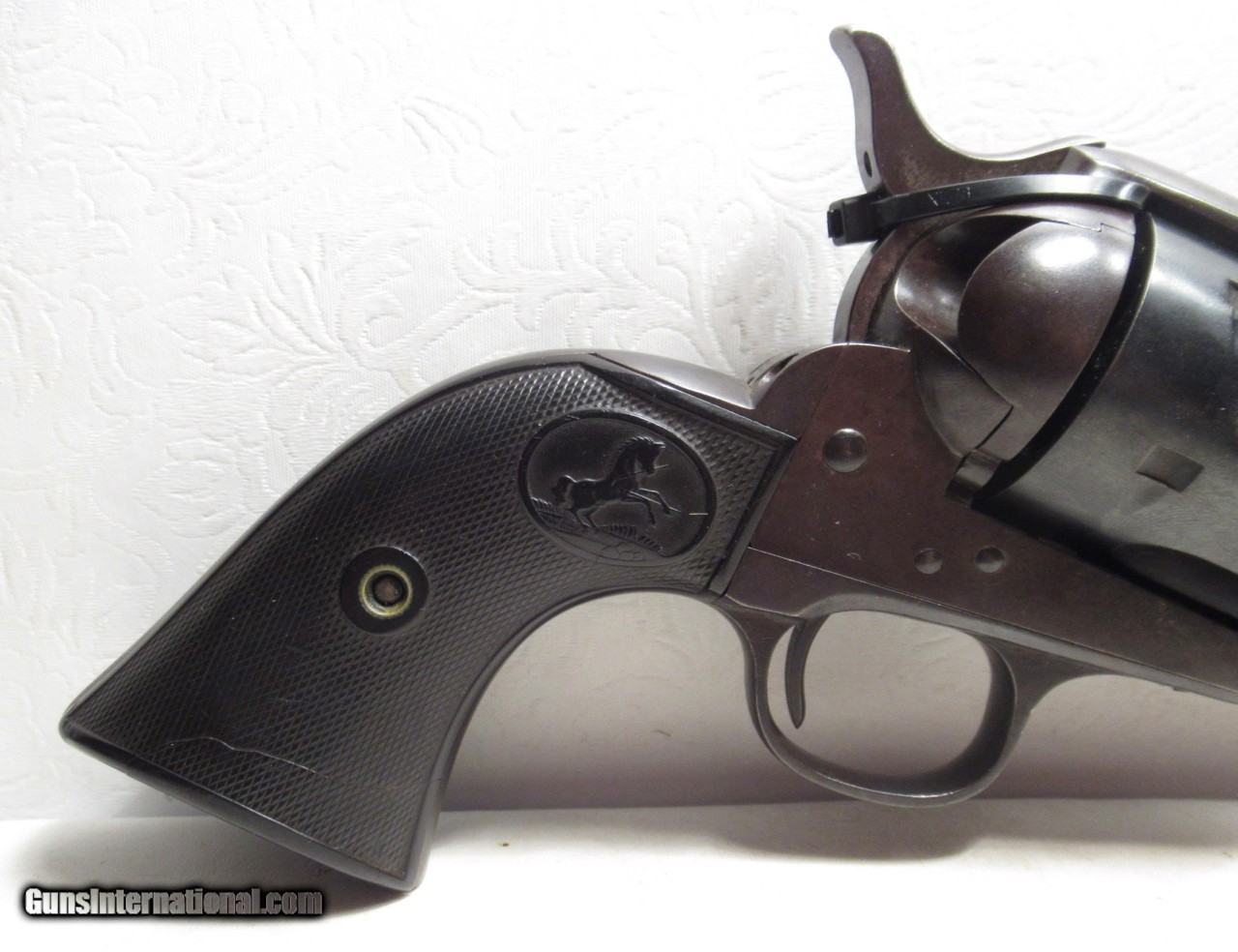 Description: Colt Single Action Army Revolver; Serial No. 295960; Per Included Factory Letter: .45 Caliber with 4 ¾” Barrel and Blue Finish; Shipped to Major Colt Distributor Norvell Shapleigh Hardware Company of St. Louis, MO. on June 22, 1907 as Part of a 35 Gun Shipment; Nice Sharp Gun with Original Finish – Metal Turning Dark; Nice Original Colt Hard Rubber Grips Numbered to Gun and “EGB” Scratched Inside Right Grip; Perfect Action and Excellent Strong Bore; Perfect Screws; Full Front Sight; Great 118 Year-Old Colt .45 Revolver Out of Shawnee, Oklahoma Indian Territory; See All Photos for Condition; No Texts; Call (254)541-5765 or Email Only; PERSONAL PROPERTY of Harold Wieser; NOTICE: We Do Not Do Any Consignments - All Items Listed are Owned by Us - NO SALES to New Jersey or New York City - Antiques Only to Massachusetts and California; Price: $4,000 Shipped; Payment Address: Harold Wieser - 1466 U.S. Hwy 77 - Rosebud, TX 76570; SEND PAYMENTS VIA USPS PRIORITY MAIL; BEWARE of SCAMS!!! – DO NOT SEND MONEY or CORRESPONDENTS ELECTRONICALLY UNLESS YOU HAVE SPOKEN to HAROLD WIESER FIRST! 254-541-5765 SOLD Manufacturer: Colt Model: 1873 S.A.A. Serial Number: 295960 |
