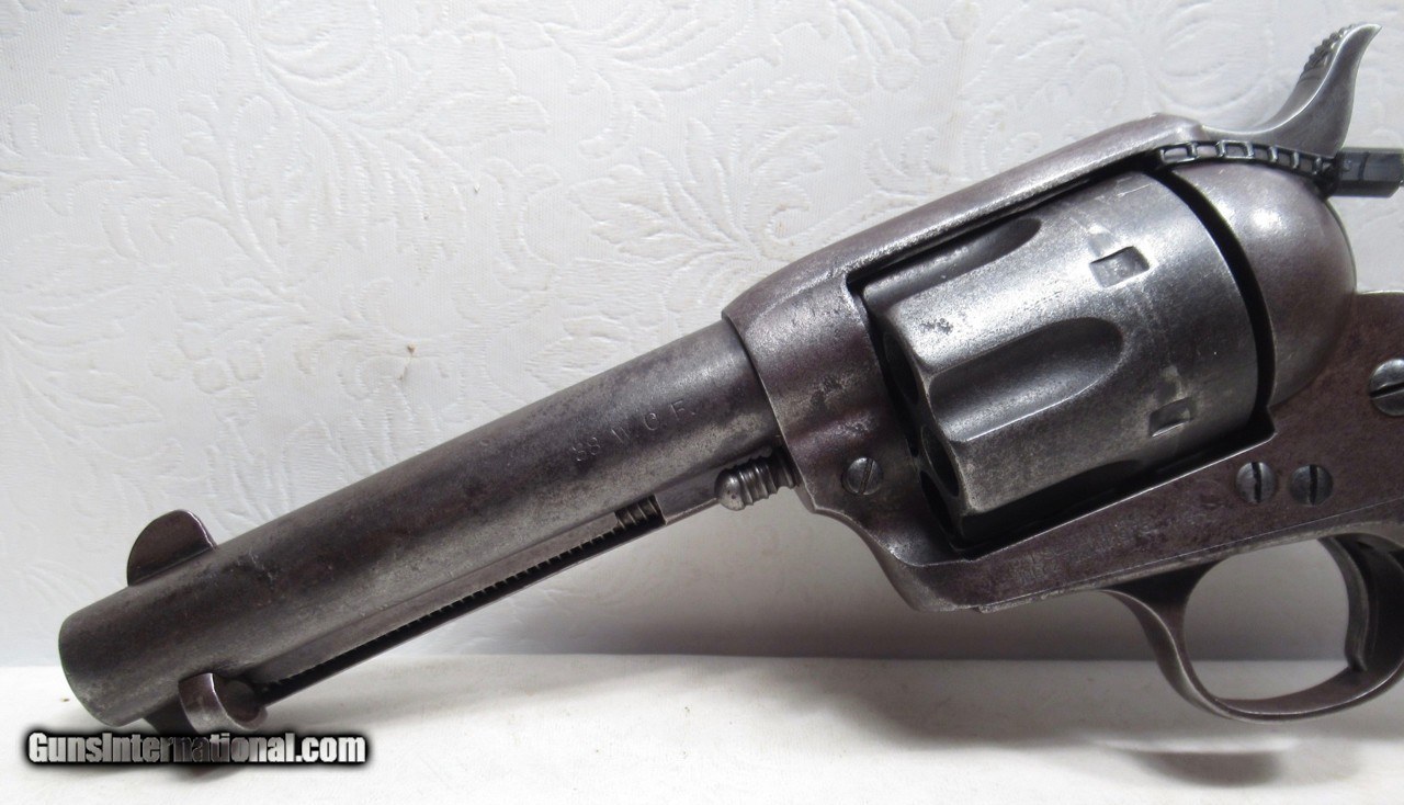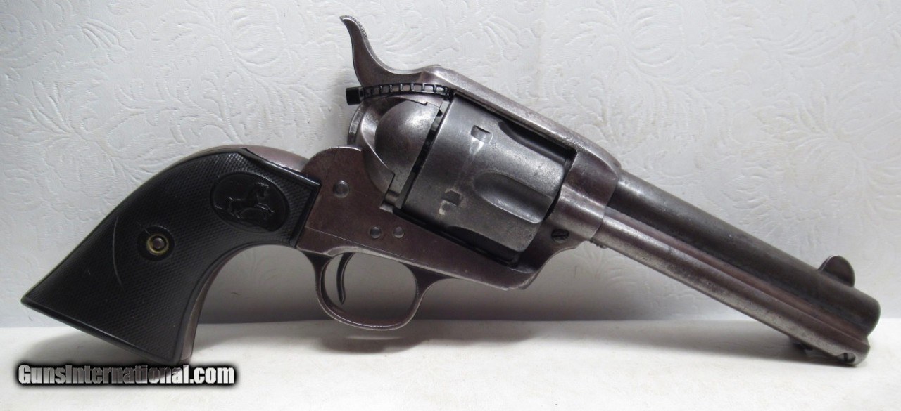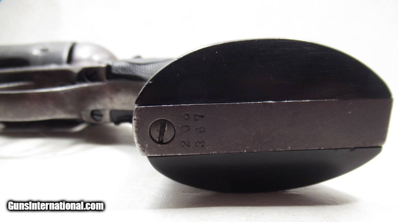 Description: Colt Single Action Army Revolver; Serial No. 206367; Per Factory Letter on Order: .38/40 (38 W.C.F.) Caliber with 4 ¾” Barrel and Blue Finish; Shipped to J.F. Smeltzer of Kansas City, MO. on Mar 2, 1901; Traces of Original Factory Metal Finish Present; Non-Original but Correct Type Grips with “4379 BF” on Inside of Left Grip; Perfect Original Screws and Full Front Sight; All Numbers Match; PERFECT TIGHT ACTION and Strong Bore with even light frosting; Formerly of the Gene Evans, Buda, Texas Collection; 123 Year-Old Texas Cowboy Colt Revolver; See All Photos for Condition; No Texts; Call (254)541-5765 or Email Only; PERSONAL PROPERTY of Harold Wieser; NOTICE: We Do Not Do Any Consignments - All Items Listed are Owned by Us - NO SALES to New Jersey or New York City - Antiques Only to Massachusetts and California; Price: $2,775 + $45 S&H Via USPS PRIORITY MAIL; Payment Address: Harold Wieser - 1466 U.S. Hwy 77 - Rosebud, TX 76570; SEND PAYMENTS VIA USPS PRIORITY MAIL; BEWARE of SCAMS!!! – DO NOT SEND MONEY or CORRESPONDENTS ELECTRONICALLY UNLESS YOU HAVE SPOKEN to HAROLD WIESER FIRST! 254-541-5765 SOLD Manufacturer: Colt Model: 1873 Serial Number: 206367 |