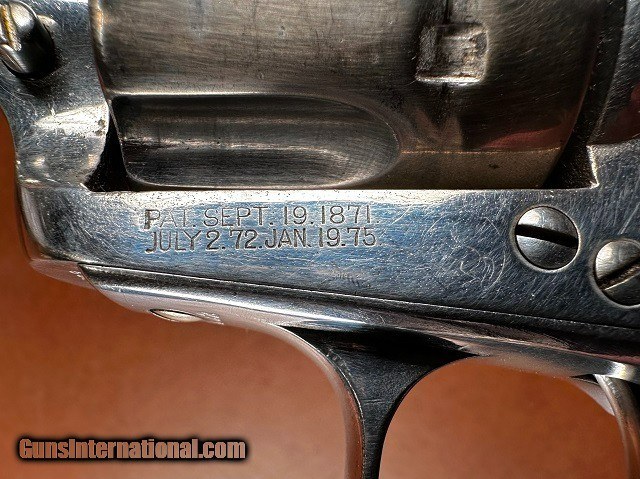 Description: Antique First Generation Model 1873 Colt Single Action Army Revolver, Nickel Plated with Ivory Grips, .45 Cal, mfg. 1898 with 4 3/4" bbl. This is a solid original Colt Single Action with a classic gunslinger look. It retains a fair amount of an older reapplied nickel finish with the balance polished to match. Period 100+ year old ivory grips fit well and have a fantastic mellowed yellow color with swirled grain and typical age checking. The right forward lower corner has been neatly repaired/replaced with ivory long ago and there is a very thin old 3/4" long chip at the left rear edge along the backstrap. Matching serial number "181022" stamped on the frame, triggerguard, and backstrap with clear patent dates. The rampant horse logo, "45 COLT" marking, and two-line barrel address are all faint but legible. Original hammer, trigger, cylinder, loading gate, blade front sight, and cartridge extractor with brass spring. Screws appear original. The cylinder pin and bushing are modern replacements. Wonderful smooth, crisp action with four distinct clicks. The cylinder locks up tight with only slight play. The cylinder gap seems a bit much and could probably benefit from minor adjustment. Fair bore with strong rifling and moderate to heavy blackpowder frosting and superfine pinprick pitting scattered throughout. A real Wild West cowboy Colt in the most desired and iconic configuration. *NOTE* Due to ivory restrictions this pistol will not be sold or shipped to residents of California, Hawaii, Illinois, Nevada, New Hampshire, New Jersey, New York, Oregon, or Washington. Jeremiah Johnson Trading sells antique arms manufactured prior to 1899 and muzzleloading blackpowder reproductions only. For the purpose of these conditions the term "antique arms" will also include muzzleloading blackpowder reproductions. Buyers must be 21 years of age or older and have no felony convictions to purchase antique arms. Antique arms do not require Federal licensing and may be shipped directly to the buyer with the following exceptions. No antique arms will be shipped to Washington D. C. or any of the five boroughs of New York City (or residents thereof). Some restrictions may apply to antique firearms shipped to California and will be noted in the item description if applicable. Any handgun shipped to New Jersey must ship to a licensed FFL holder, no exceptions. Any muzzleloading blackpowder reproduction rifle, shotgun, or handgun shipped to Illinois must ship to an FFL holder. Items containing antique ivory will not be sold or shipped to residents of California, Hawaii, Illinois, Nevada, New Hampshire, New Jersey, New York, Oregon, or Washington. Antique muzzleloaders and antiques which fire obsolete cartridges may be shipped internationally however it is the responsibility of the buyer to know and abide by their local laws and provide proof that the antique arm is legal to receive and own. Payment can be made by money order, banker's check, personal check, credit card (no additional fees), or bank wire. Please allow 7-10 business days for clearance on personal checks. If paying by credit card please call us directly to process your order. Items are professionally packed and shipped USPS Priority Mail with insurance coverage for the sale price and signature required for delivery. Items valued over $5,000.00 are shipped Registered Mail. Buyer pays actual shipping costs with no added charge for packing materials or handling. We describe items accurately and thoroughly. If an item has been misrepresented or significant defect overlooked you may return it for a full refund (minus return shipping costs) within 3 days of having received it. This timeframe begins once the package is delivered by the carrier. Buyer's remorse or concerns over issues noted in the description and/or pictures is not a valid excuse for return. Returned items must be received in the same condition as originally shipped - cleaning, disassembly, alteration, or damage of any kind will void inspection privileges. Occasionally a post-1898 firearm from my personal collection may be sold under this account and any such transaction is a personal sale in no way affiliated with Jeremiah Johnson Trading. Any such arm will be shipped to a licensed FFL or C&R holder in accordance with Federal law. All antique arms are sold as collector's items and are not warranted safe for shooting. Please consult a competent gunsmith prior to shooting any firearm. SOLD Antique: Yes Handgun Caliber: .45 Colt Manufacturer: Colt Model: 1873 Single Action Army Serial Number: 181022 Barrel Length: 4 3/4 Finish: Nickel Manufacture Date: 1898 |