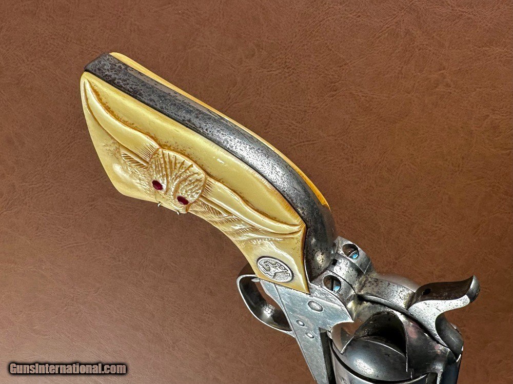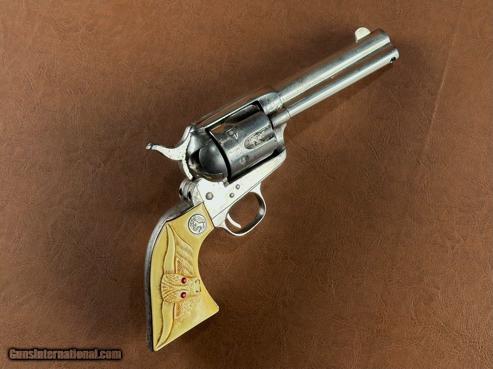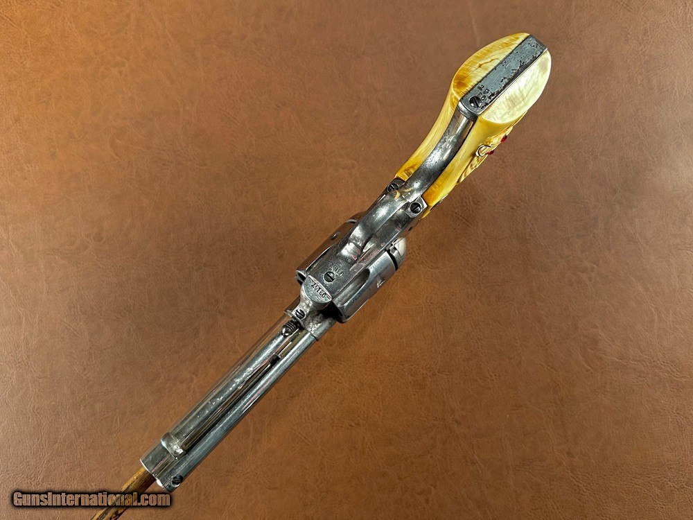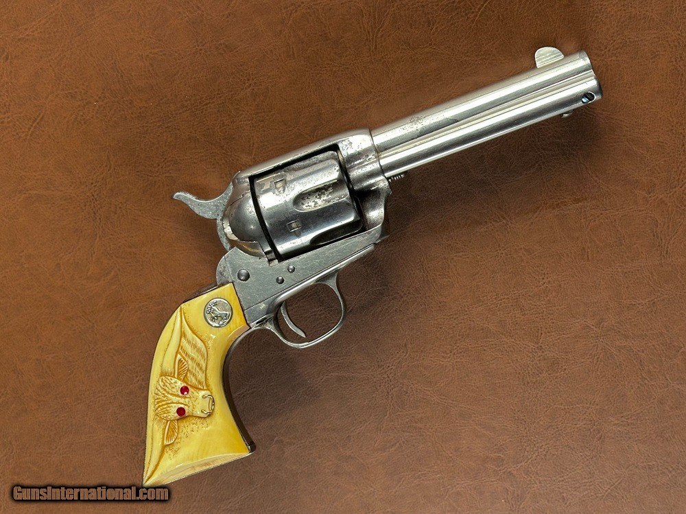 1873 Colt Single Action Army Frontier Six Shooter Revolver .44-40 Rare Etched Panel 4 3/4" Nickel Carved Steer Head Ivory 1883 SAA Cowboy Pistol