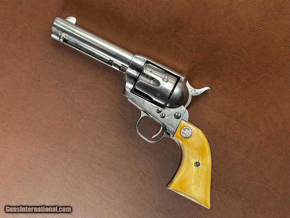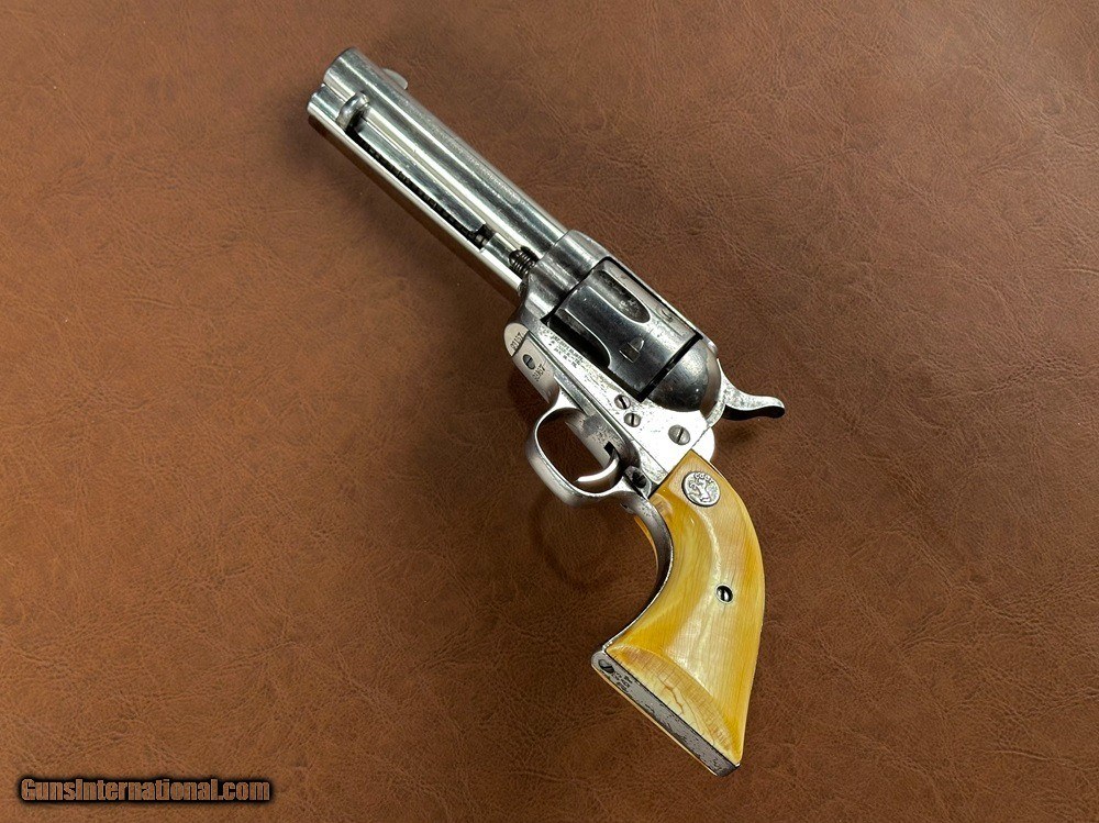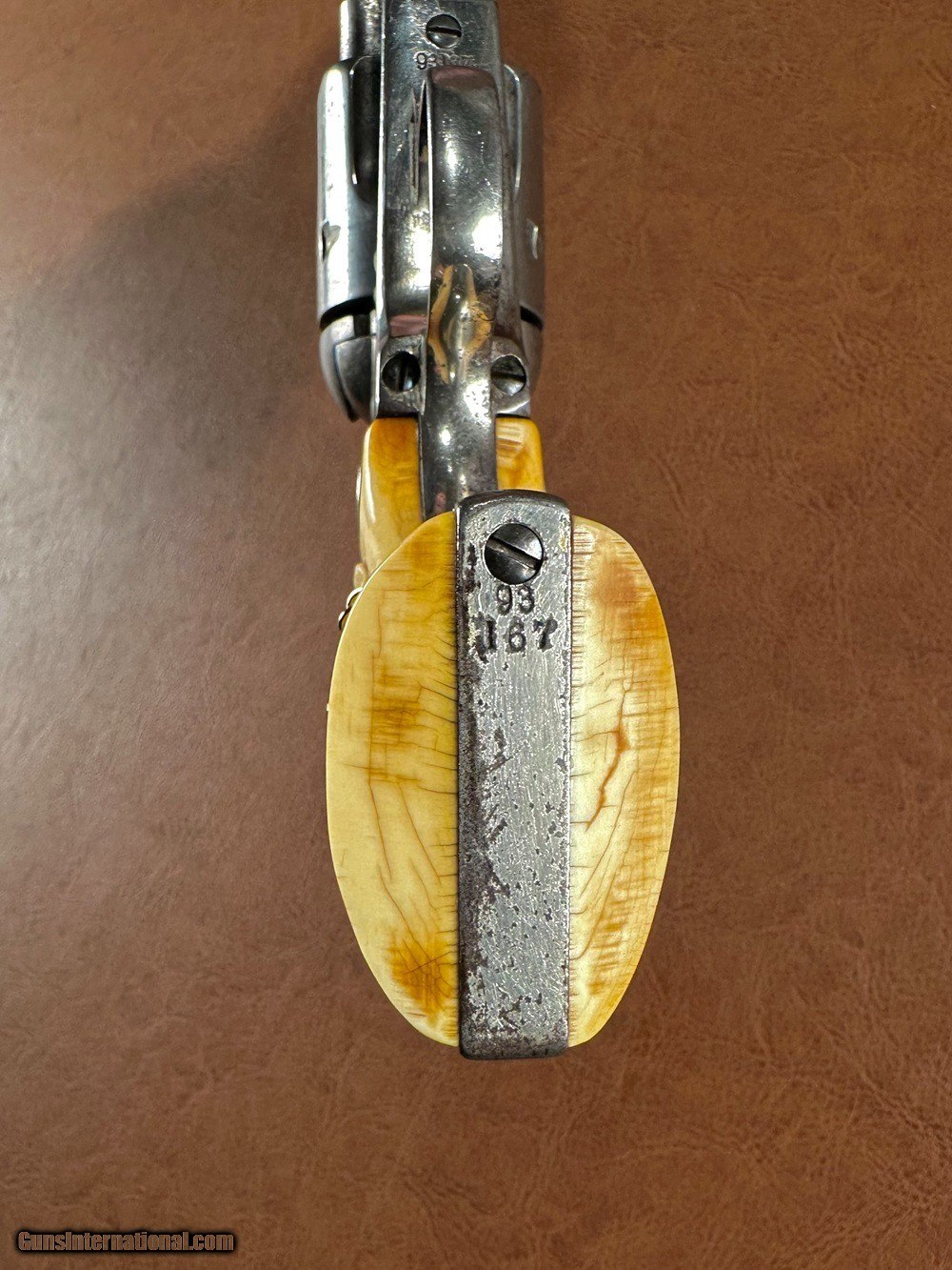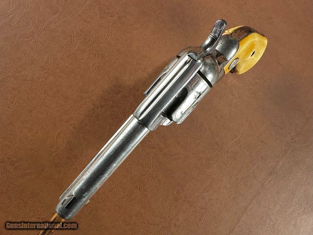 1873 Colt Single Action Army Frontier Six Shooter Revolver .44-40 Rare Etched Panel 4 3/4" Nickel Carved Steer Head Ivory 1883 SAA Cowboy Pistol
