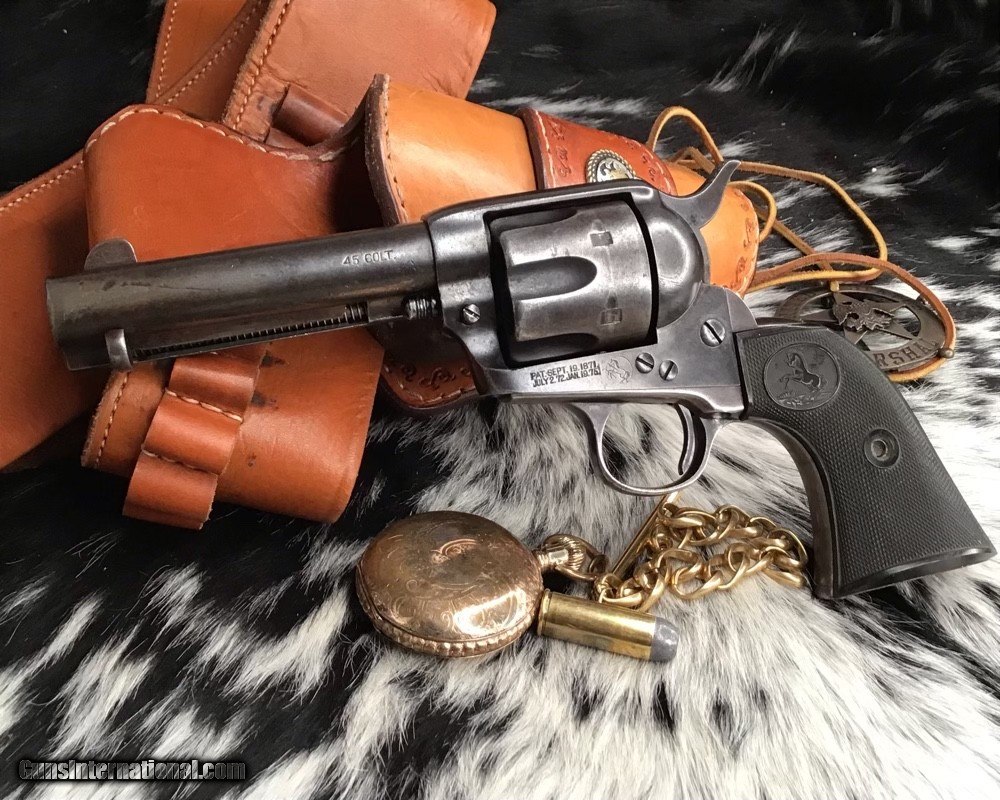 1900 Colt SAA, 4.75 inch , .45 Colt,Engraved, Ivory, Cased