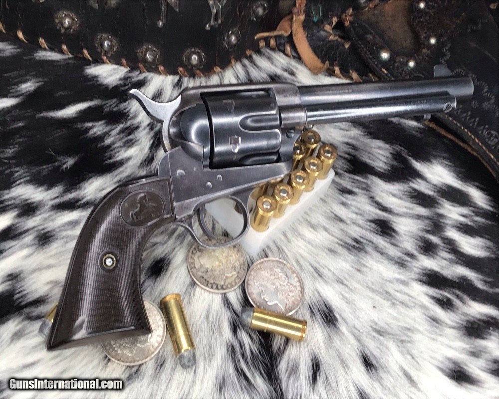Description: 1901 Colt SAA First Generation wearing a 5.5 inch barrel and chambered in .45 Colt cartridge. Gun has 80% of original Blued finish remaining, hard rubber grips with Colt Ramparts oval in very good condition with no cracks. Tight and crisp four click action. Bisley wide trigger. Good bore with strong rifling, single line barrel address, front blade sight with fixed rear notch sight. A very nice honest first Gen SAA to shoot or collect in a very desirable barrel and caliber. Add 3% if paying with credit card. Colt Archives letter ordered 02/02/22 , letter goes with gun. God Bless America from a proud American, and a Viet Nam Vet , thankful for our freedoms.. paid for by the Blood ,Sweat and Tears of our brave men and women in uniform. Ten Below Firearms is a Veteran owned and operated business. We specialize in out of production models of high quality firearms. We love to ship! If you are out of state or can't make it to our store, just give us a call! Handguns normally ship for $30 and Long guns for $40 to $65 for extra length long guns. That's 2-3 day USPS Priority shipping, Delivery conformation and with tracking number. Optional Postal insurance is additional $1.70 per $100 and highly recommended. We are OPEN BY APPOINTMENT ONLY FOR IN PERSON VISITS SOLD Curio/Relic: Yes Handgun Caliber: .45 Colt Manufacturer: Colt Model: SAA Serial Number: 212447 Barrel Length: 5.5 inch Condition: Very good Metal Condition: Very good Bore Condition: Good Action: SA Triggers: Bisley wide trigger Finish: Blued Sights: Fixed Manufacture Date: 1901 Extras: Colt Letter Item Location: Mn |