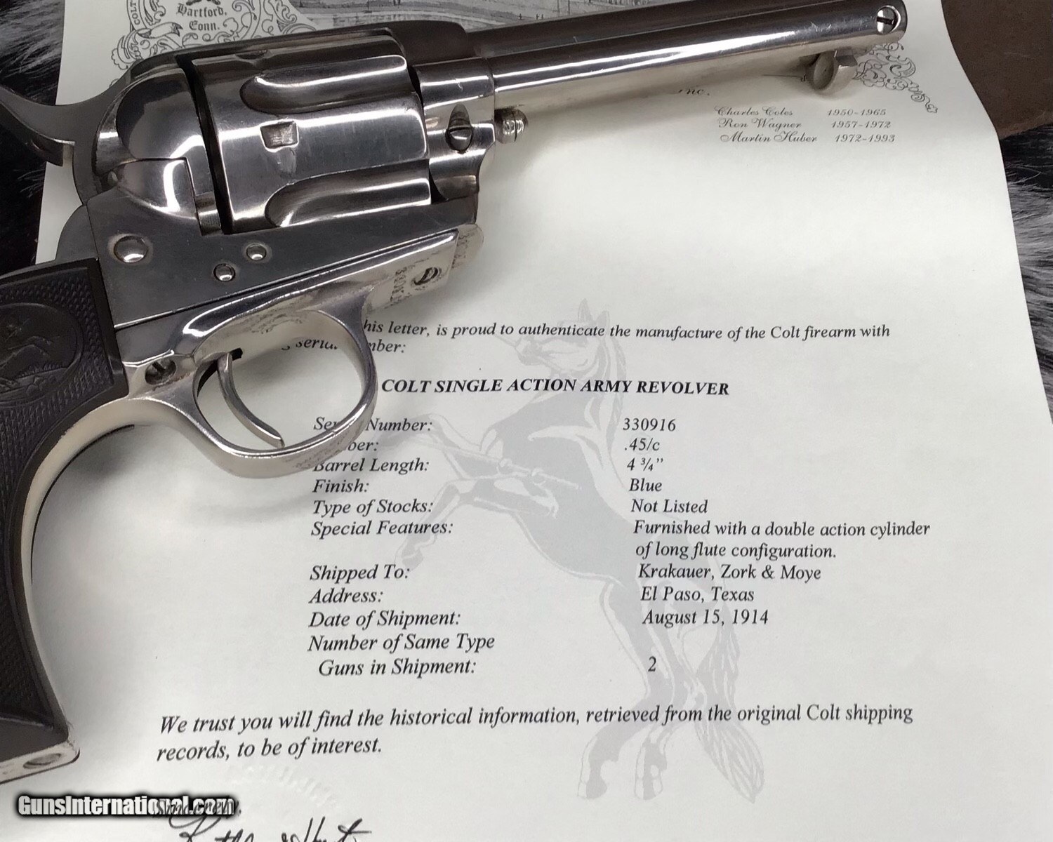 1915 Colt SAA Long Flute Revolver, .45 Colt, W/Colt Archives letter