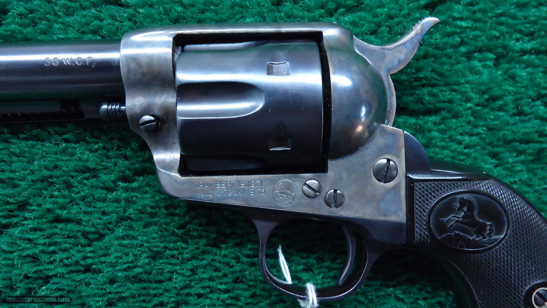 Description: Cal 38 WCF. 4-3/4" bbl, 6-shot fluted cylinder and trademark Colt hard rubber grips. Bbl, cylinder and grip straps retain nearly all of a reblue finish. Restored case colors on frame and hammer are strong. Grips show some light wear. Good bore. Leroy Merz Antique Firearms specializes in antique and vintage Winchesters and other fine American firearms. Since 1965 Mr. Merz has taken part in the world of firearms and has been a contributor to many well known reference books. Just recently we mailed the 127th edition of our privately-published catalog. We have hundreds of additional guns in every price range at our home online. Search for Merz Antiques in google. SOLD Curio/Relic: Yes |