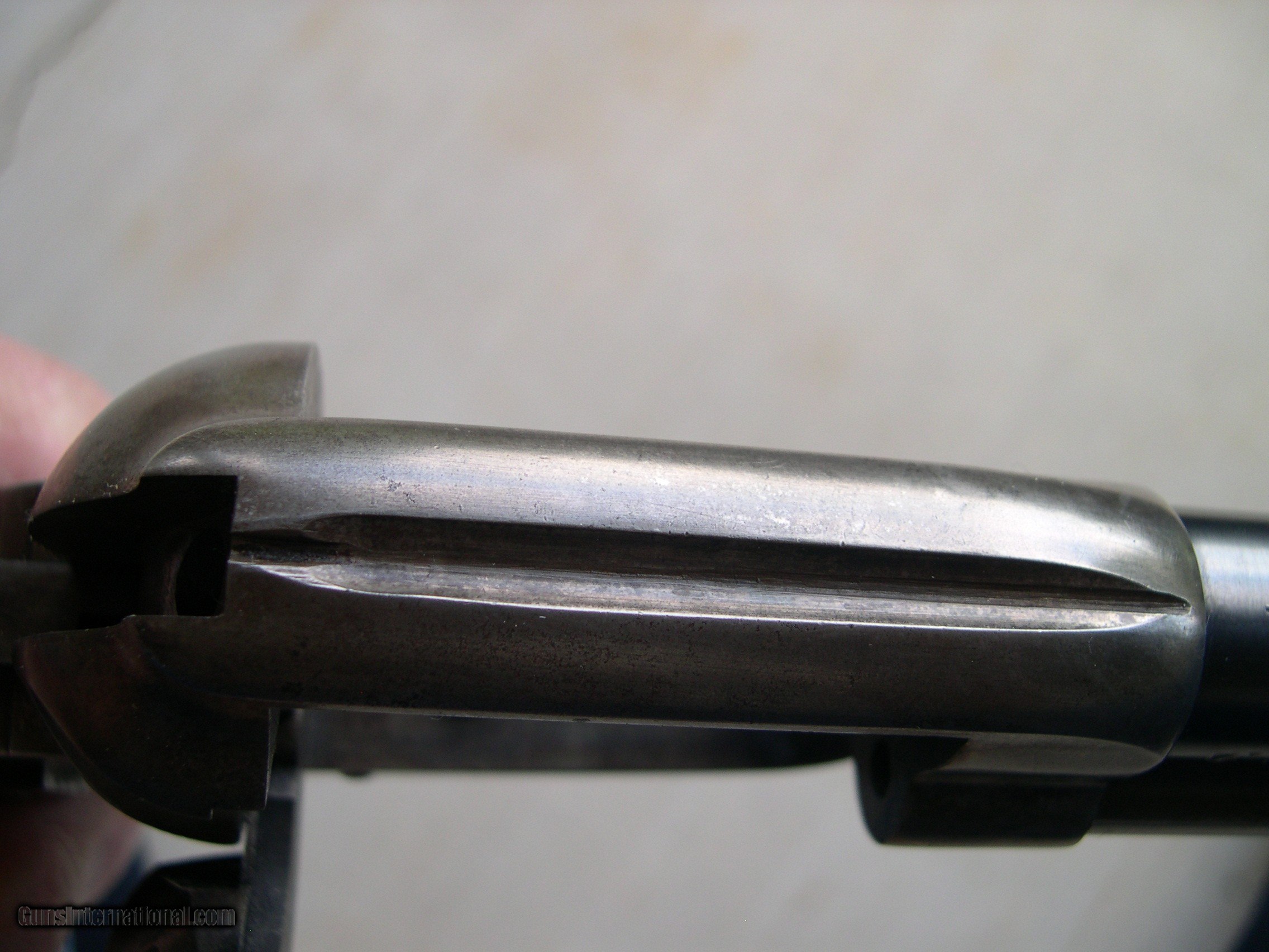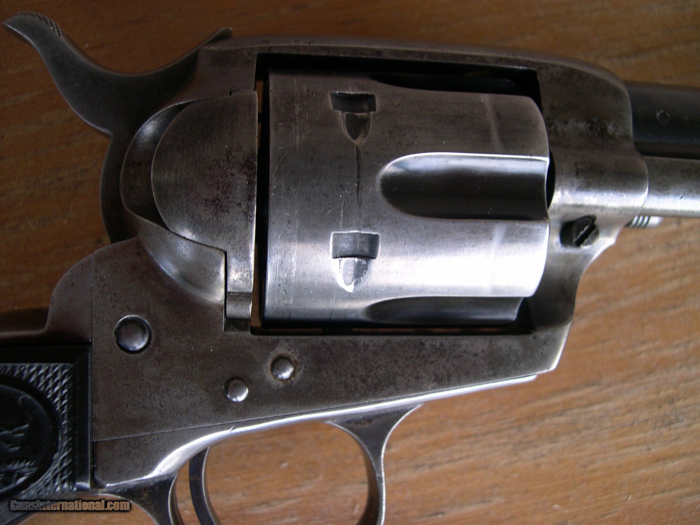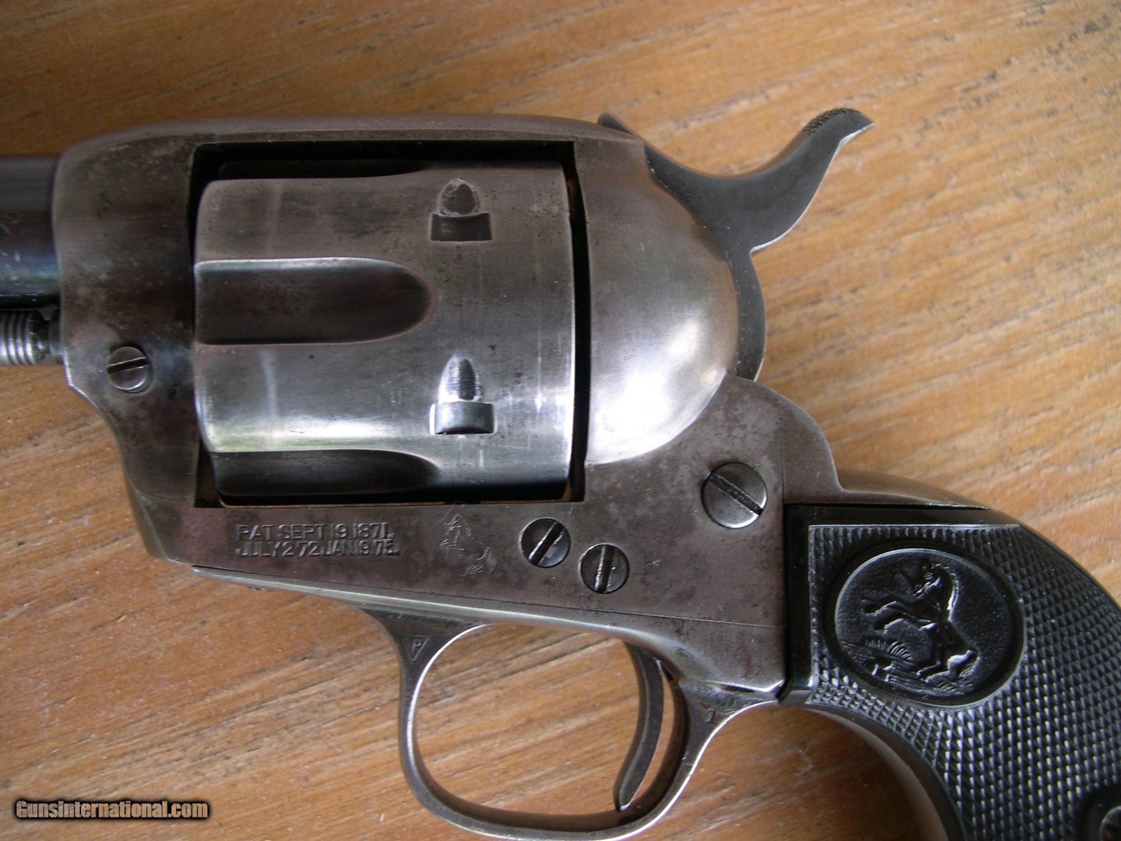 Description: This is for my Colt 1st Generation SAA 45 Colt revolver with 7 1/2 inch barrel. The postive- The revolver is in very good condition with traces of case color on the frame and 30-40% blue on the barrel. The serial numbers match on the frame, triggerguard, grip frame, and cylinder. The bore is bright with excellent lands and grooves and with only some very fine pitting. The action is tight and the four clicks are solid and distinct. It came with smooth wood grips, but I had a set of 3rd Gen. hard rubber grips that fit well and I found these more comfortable to shoot with. Both sets of grips will be included with the gun. The 3rd Gen, grips will require a little filing and polishing at the bottom of the grip if you decide to use these permanently. The 3rd Cen. grips are marked with serial number 89925 inside each grip. the wood grips are unmarked. The negative- The Colt factory letter is included, but the barrel length on the factory letter is 5 1/2 inch. It is serial number 3354xx and was shipped to Shapleigh Hardware Company in St. Louis, MO, on February 3, 1917. At some time since then, someone has replaced the 5 1/2 inch barrel with a 7 1/2 inch barrel. There are a couple of small dings on the rear of the barrel where a wrench or vice held it. I purchased this revolver to shoot and have probably shot 400-500 rounds of cowboy loads through it. It works well and is very accurate, shooting close to the point of aim. Unfortunately my age and eyesight are catching up with me, and my shooting opportunities are becoming less frequent, so I am letting go of some of my guns that are spending almost all their time in the gun safe. Due to the fact the barrel length does not match the letter, I am pricing it as a "shooter". I have 40 or so photos of this gun, but am limited to 15 with this listing. Please email me if you want to see more photos. Payment must be in the form of USPS Money Orders. The revolver will be shipped from my dealer to yours via insured Priority Mail for a flat fee of $50. SOLD Handgun Caliber: .45 Colt Manufacturer: Colt Model: SAA Barrel Length: 7 1/2 |