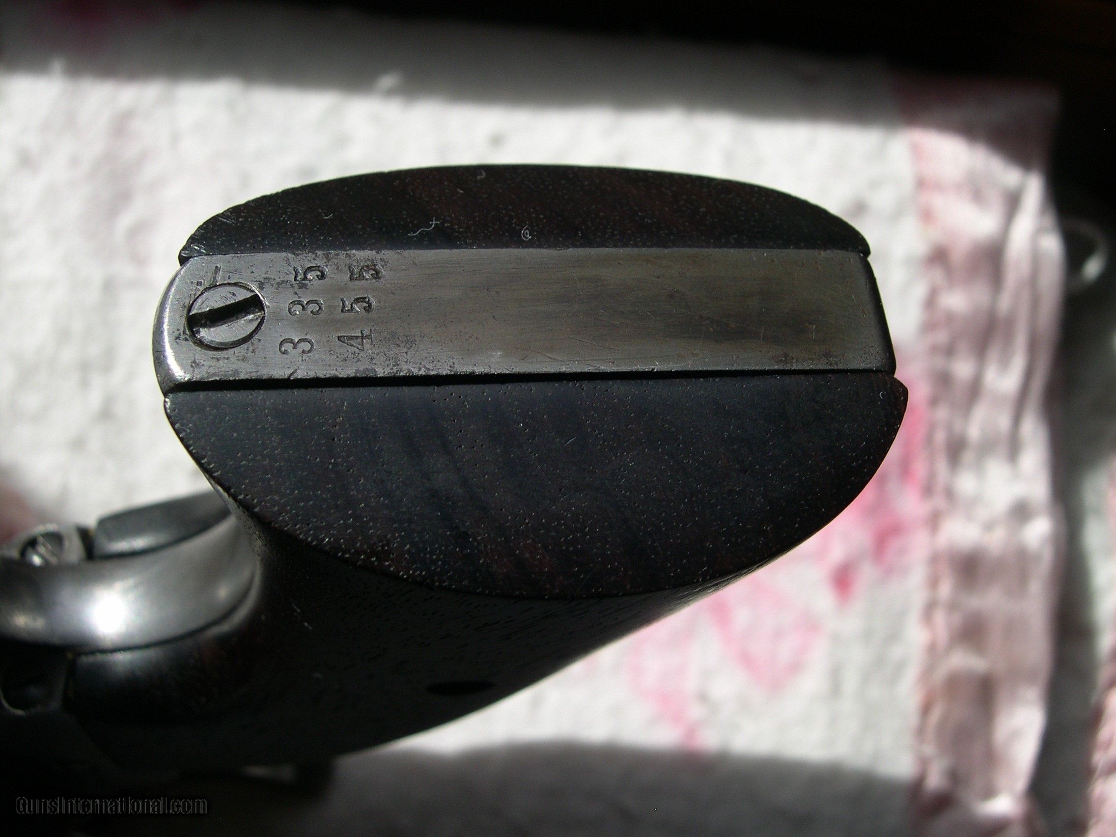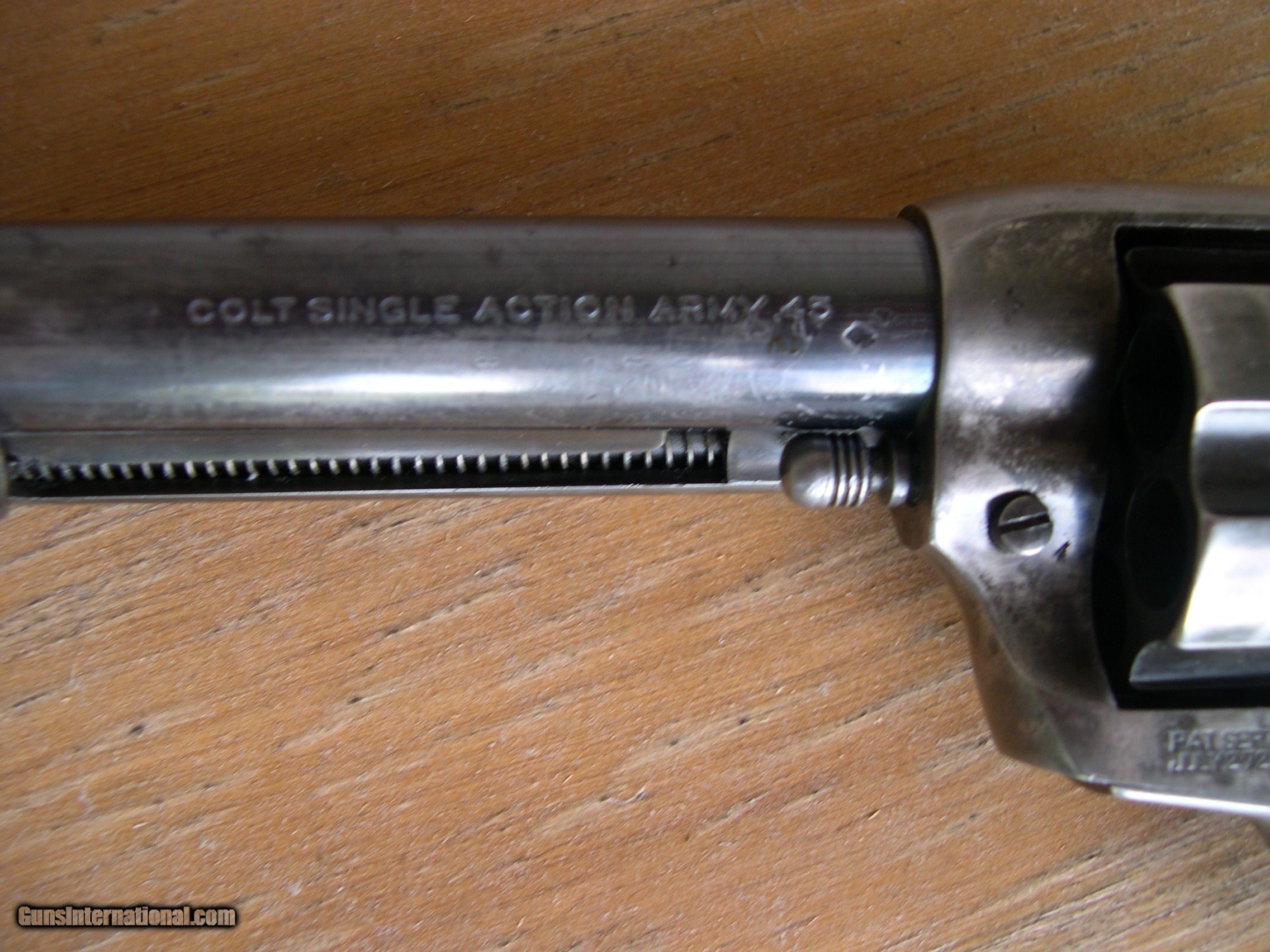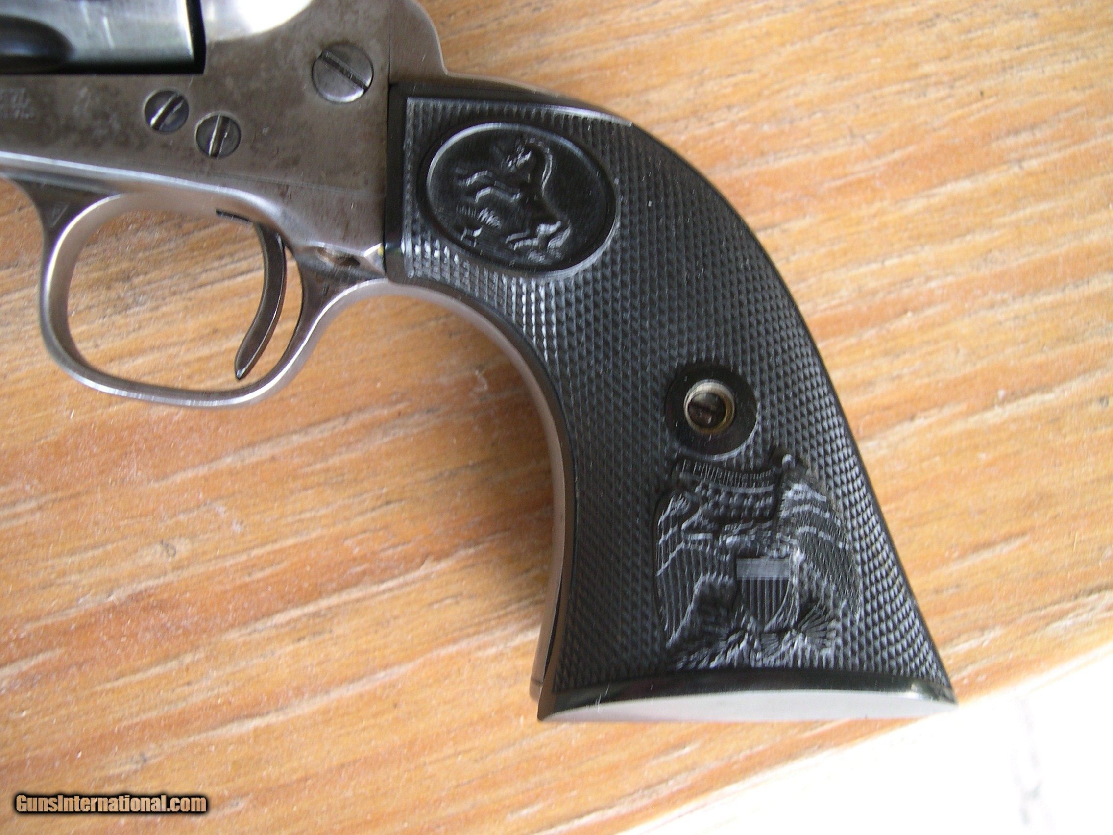 Description: This is for my Colt 1st Generation SAA 45 Colt revolver with 7 1/2 inch barrel. The postive- The revolver is in very good condition with traces of case color on the frame and 30-40% blue on the barrel. The serial numbers match on the frame, triggerguard, grip frame, and cylinder. The bore is bright with excellent lands and grooves and with only some very fine pitting. The action is tight and the four clicks are solid and distinct. It came with smooth wood grips, but I had a set of 3rd Gen. hard rubber grips that fit well and I found these more comfortable to shoot with. Both sets of grips will be included with the gun. The 3rd Gen, grips will require a little filing and polishing at the bottom of the grip if you decide to use these permanently. The 3rd Cen. grips are marked with serial number 89925 inside each grip. the wood grips are unmarked. The negative- The Colt factory letter is included, but the barrel length on the factory letter is 5 1/2 inch. It is serial number 3354xx and was shipped to Shapleigh Hardware Company in St. Louis, MO, on February 3, 1917. At some time since then, someone has replaced the 5 1/2 inch barrel with a 7 1/2 inch barrel. There are a couple of small dings on the rear of the barrel where a wrench or vice held it. I purchased this revolver to shoot and have probably shot 400-500 rounds of cowboy loads through it. It works well and is very accurate, shooting close to the point of aim. Unfortunately my age and eyesight are catching up with me, and my shooting opportunities are becoming less frequent, so I am letting go of some of my guns that are spending almost all their time in the gun safe. Due to the fact the barrel length does not match the letter, I am pricing it as a "shooter". I have 40 or so photos of this gun, but am limited to 15 with this listing. Please email me if you want to see more photos. Payment must be in the form of USPS Money Orders. The revolver will be shipped from my dealer to yours via insured Priority Mail for a flat fee of $50. SOLD Handgun Caliber: .45 Colt Manufacturer: Colt Model: SAA Barrel Length: 7 1/2 |