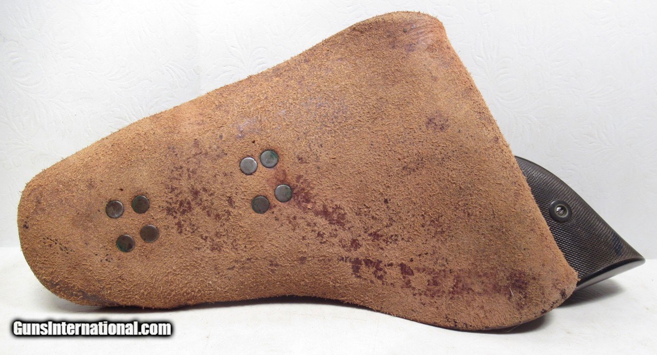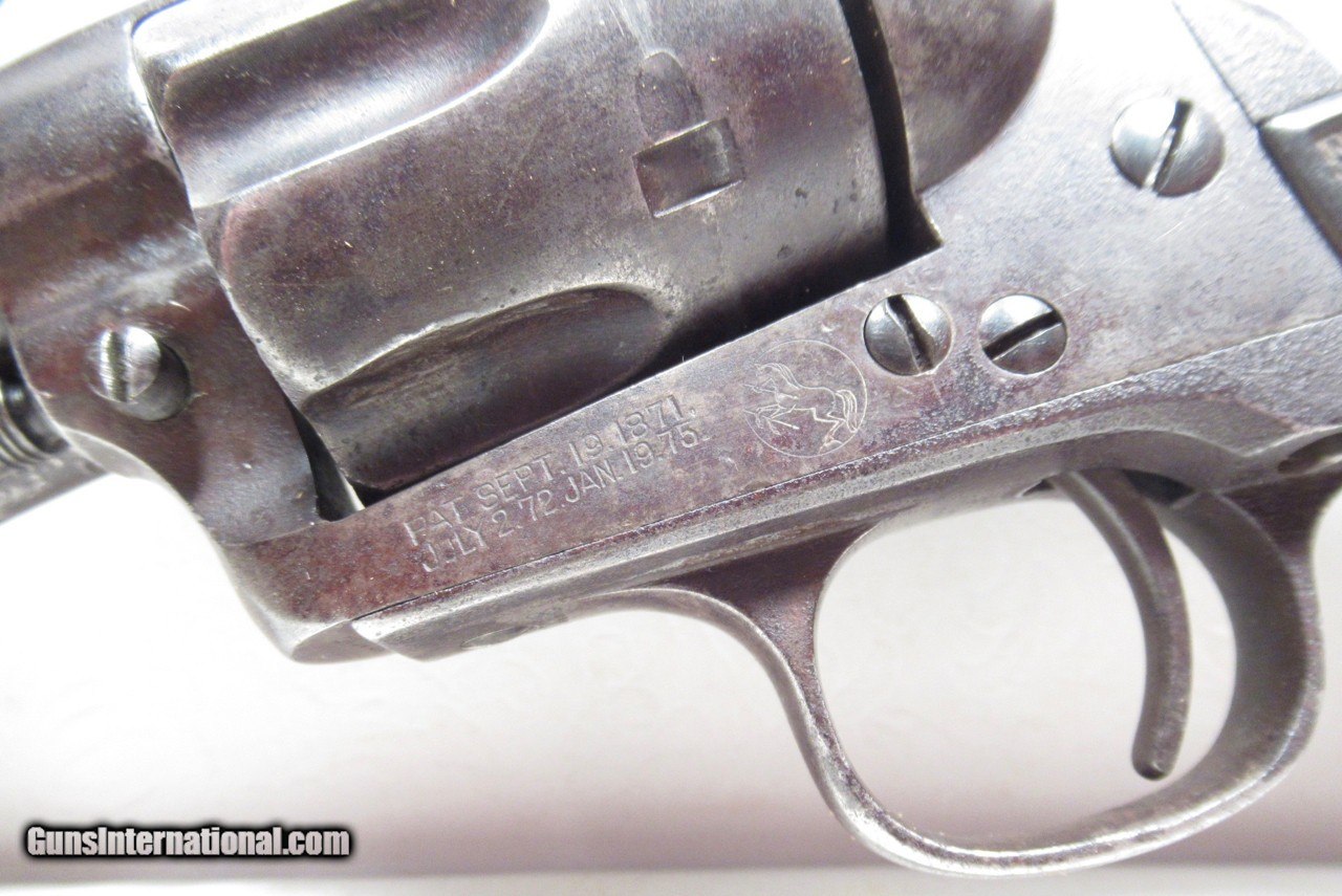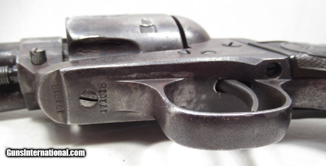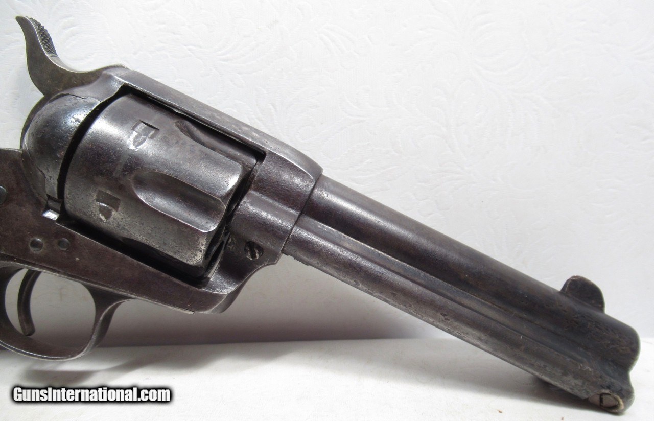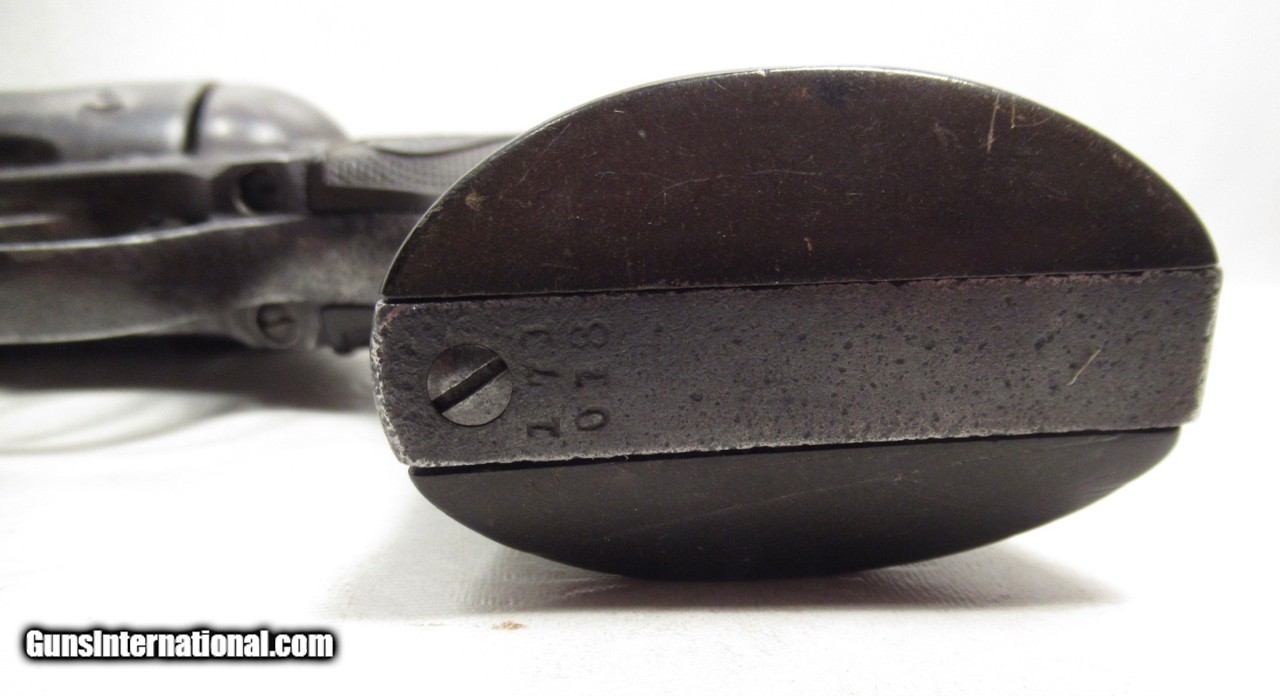 Description: Colt Single Action Army Revolver; Serial No. 171018; .45 Caliber with 4 ¾” Barrel and Blue Finish; Colt Hard Rubber Grips; Will Letter to Simmons Hardware Co. of St. Louis, Missouri; Shipped 1897; Some Original Factory Blue Finish Remains; Perfect Action; Strong Bore with Moderate Even Chattering Throughout; Very Nice Carved Double-Loop Holster Included; This is a Rough Old 126 Year-Old Texas Cowboy Colt 45 Revolver that Surfaced Northeast of Dallas, Texas; See All Photos for Condition; No Texts; Call (254)541-5765 or Email Only; PERSONAL PROPERTY of Harold Wieser; NOTICE: We Do Not Do Any Consignments - All Items Listed are Owned by Us - NO SALES to New Jersey or New York City - Antiques Only to Massachusetts and California; Price: $2,975 + $45 S&H Via USPS PRIORITY MAIL; Payment Address: Harold Wieser - 1466 U.S. Hwy 77 - Rosebud, TX 76570; SEND PAYMENTS VIA USPS PRIORITY MAIL; BEWARE of SCAMS!!! – DO NOT SEND MONEY or CORRESPONDENTS ELECTRONICALLY UNLESS YOU HAVE SPOKEN to HAROLD WIESER FIRST! 254-541-5765 SOLD Antique: Yes Manufacturer: Colt Model: 1873 Serial Number: 171018 |