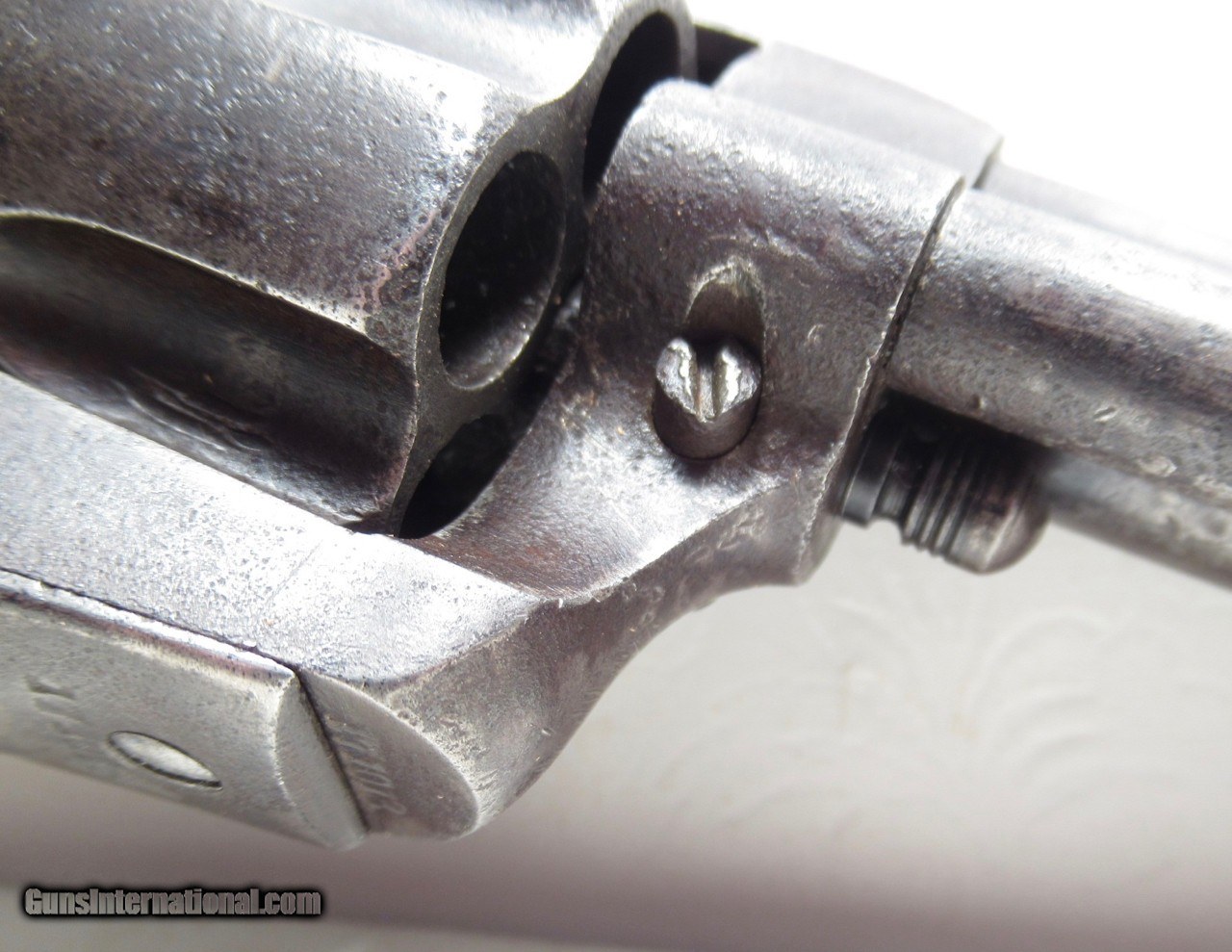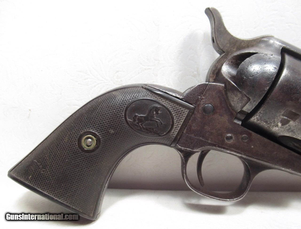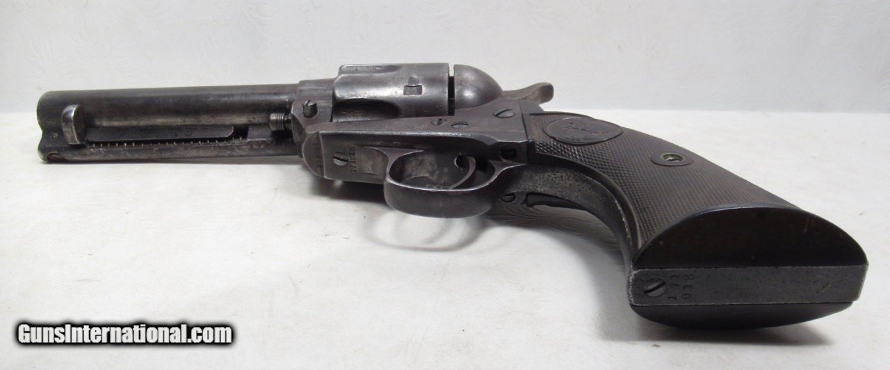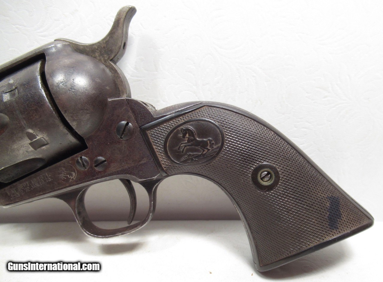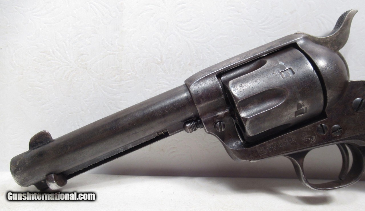 Description: Colt Single Action Army Revolver; Serial No. 171018; .45 Caliber with 4 ¾” Barrel and Blue Finish; Colt Hard Rubber Grips; Will Letter to Simmons Hardware Co. of St. Louis, Missouri; Shipped 1897; Some Original Factory Blue Finish Remains; Perfect Action; Strong Bore with Moderate Even Chattering Throughout; Very Nice Carved Double-Loop Holster Included; This is a Rough Old 126 Year-Old Texas Cowboy Colt 45 Revolver that Surfaced Northeast of Dallas, Texas; See All Photos for Condition; No Texts; Call (254)541-5765 or Email Only; PERSONAL PROPERTY of Harold Wieser; NOTICE: We Do Not Do Any Consignments - All Items Listed are Owned by Us - NO SALES to New Jersey or New York City - Antiques Only to Massachusetts and California; Price: $2,975 + $45 S&H Via USPS PRIORITY MAIL; Payment Address: Harold Wieser - 1466 U.S. Hwy 77 - Rosebud, TX 76570; SEND PAYMENTS VIA USPS PRIORITY MAIL; BEWARE of SCAMS!!! – DO NOT SEND MONEY or CORRESPONDENTS ELECTRONICALLY UNLESS YOU HAVE SPOKEN to HAROLD WIESER FIRST! 254-541-5765 SOLD Antique: Yes Manufacturer: Colt Model: 1873 Serial Number: 171018 |